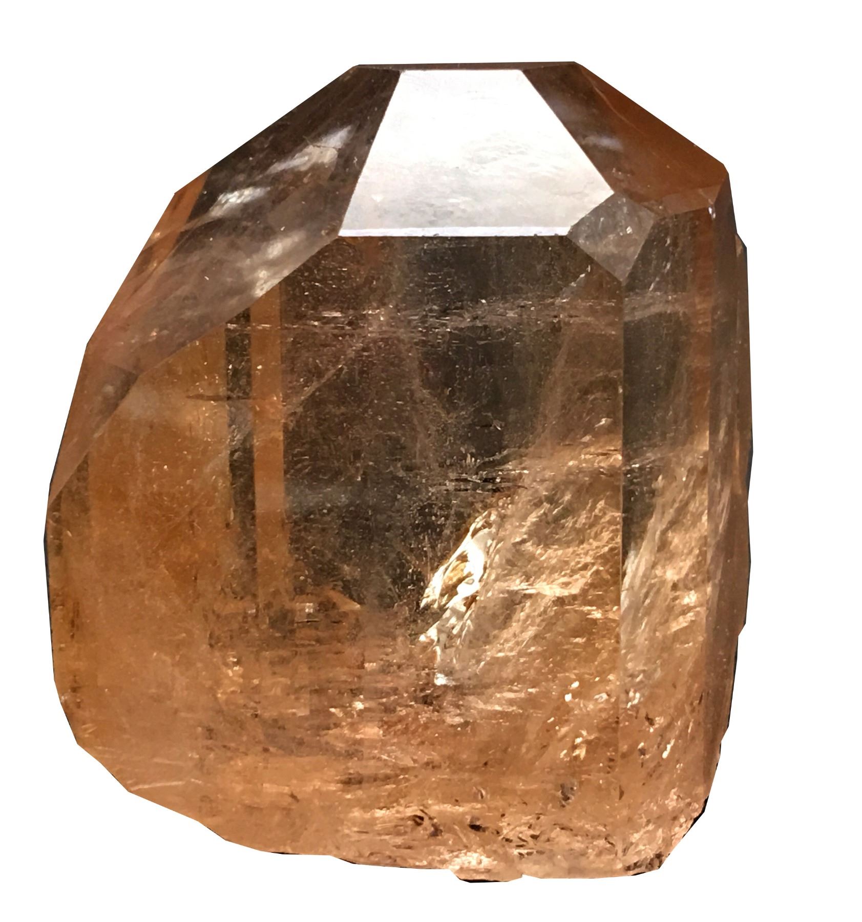 This is a "jewel" of a topaz crystal, possessing a strong color, glassy luster, and gem-quality transparency. The crystal has textbook form, superb faces and termination. It is complete all around. Dassu, Braldu Valley, Pakistan is the source of this specimen and is known for producing extraordinary aquamarine and topaz specimens from numerous complex granitic pegmatites in the area. Dimensions (cm): 4.3 H x 4.4 W x 3 D. 108.1 grams. Location: Dassu, Braldu Valley, Skardu District, Baltistan, Gilgit-Baltistan, Pakistan