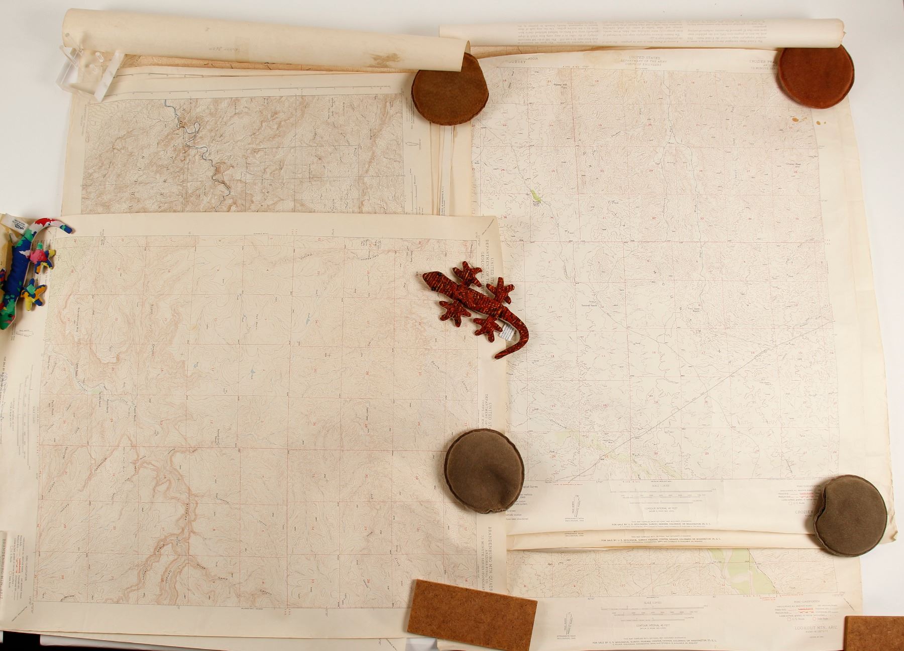 1) 5 maps showing topography & aerial photo's (1947) from the U.S. Dept. of the Army Corp of Engineers. (Lookout Mtn, Saddle Mtn.) approx. 28" x 22"; 2) Geologic Atlas of the U.S. Folio, Arizona by F.L. Ransome 1923, (some tearing 7 chipping at edges due to age, please inspect); 3) approx 10 Topographical Maps of the U.S., Arizona, includes Pinal/Gila & many more.