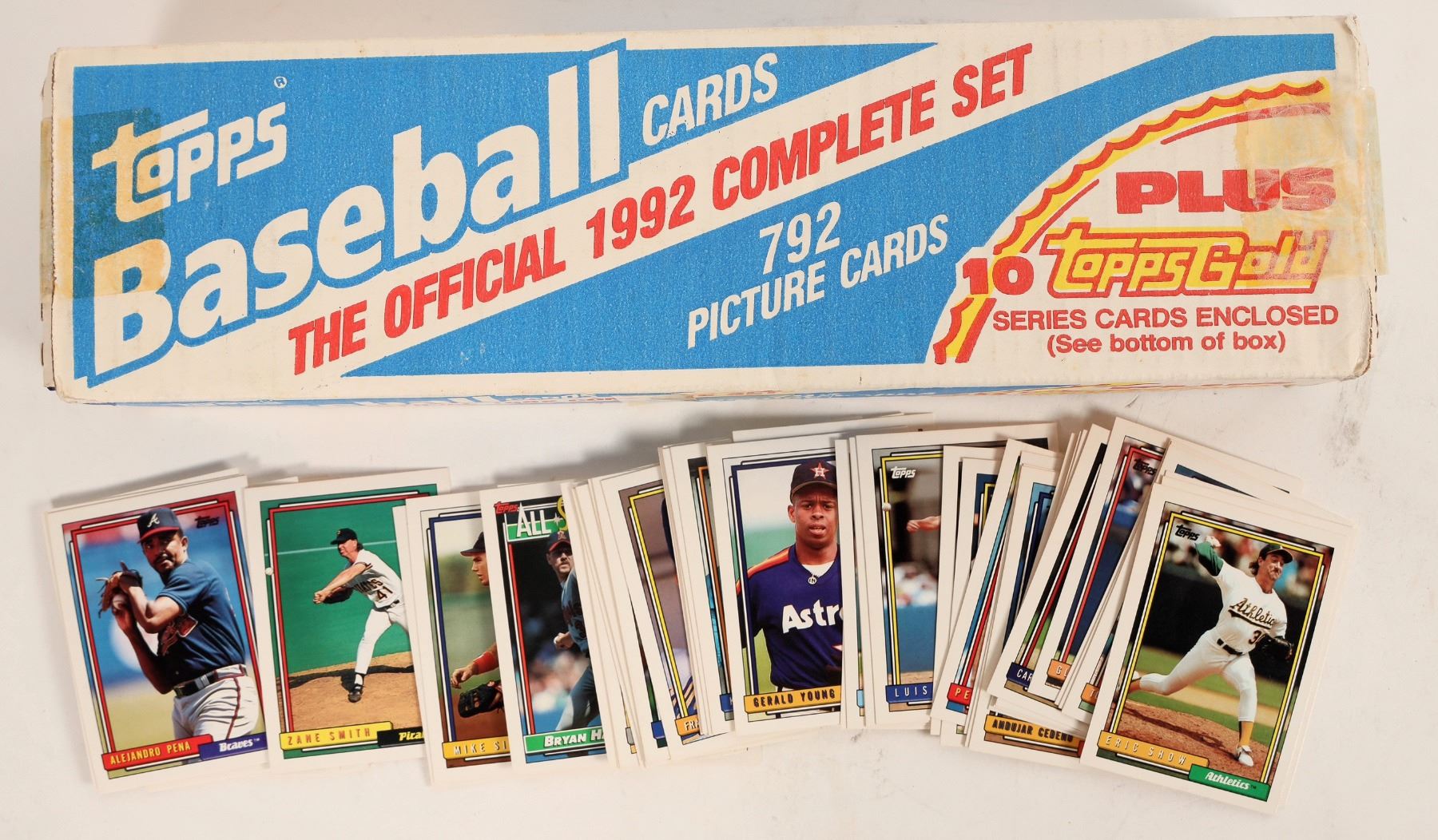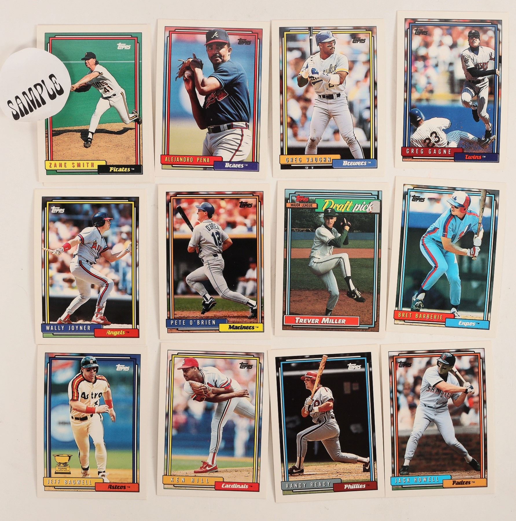 Topps 1992 complete set of baseball cards. As far as can be known, this is a complete set, with cards being in near new shape. Seal has been broken and cards have not been graded. Please see photos for more details.