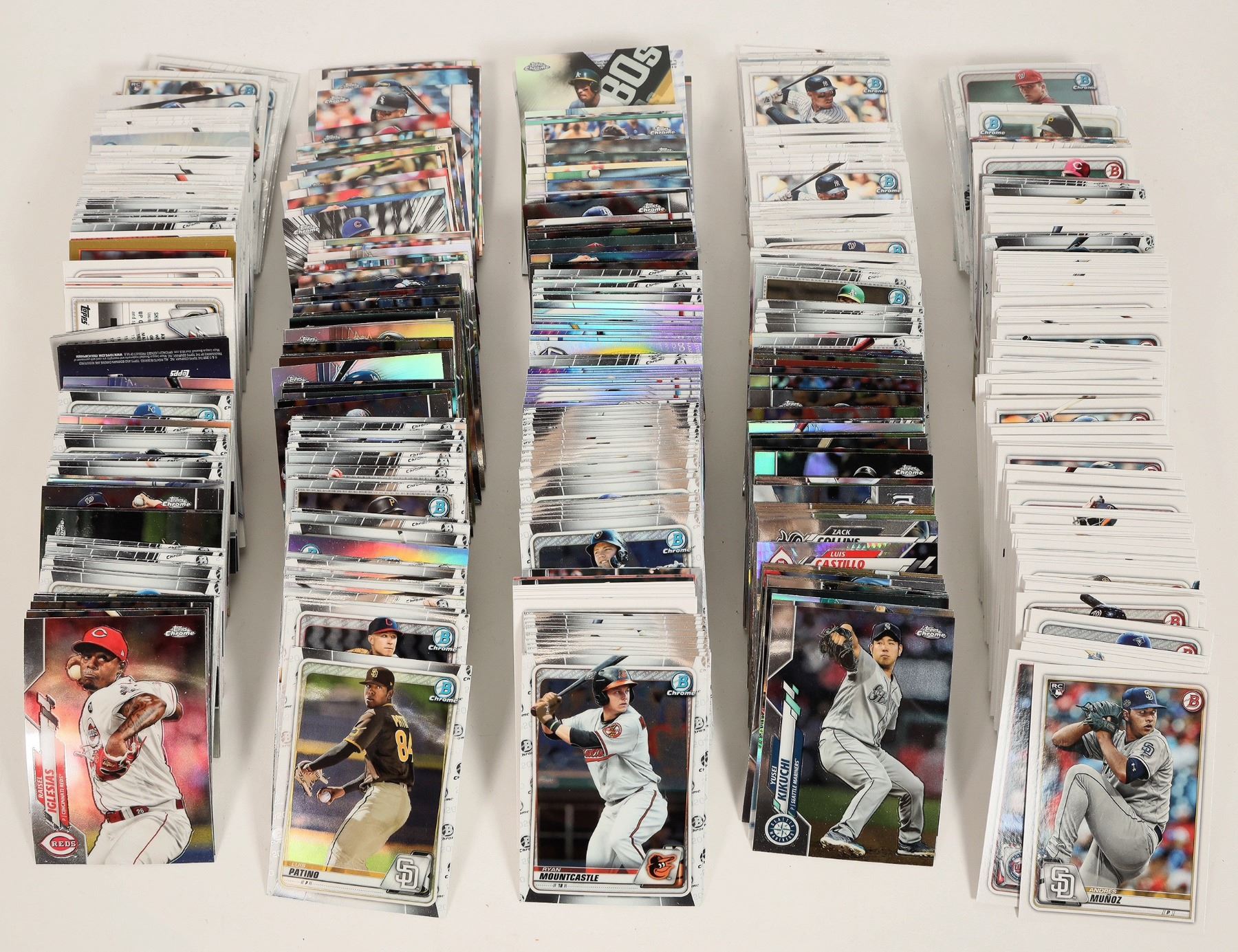 Topps Chrome series baseball cards (800+). Players include Cody Bellinger, David Peralta, Patrick Corbin and many more. All cards are in nice condition, although they have not been graded, Please see photos for more details.