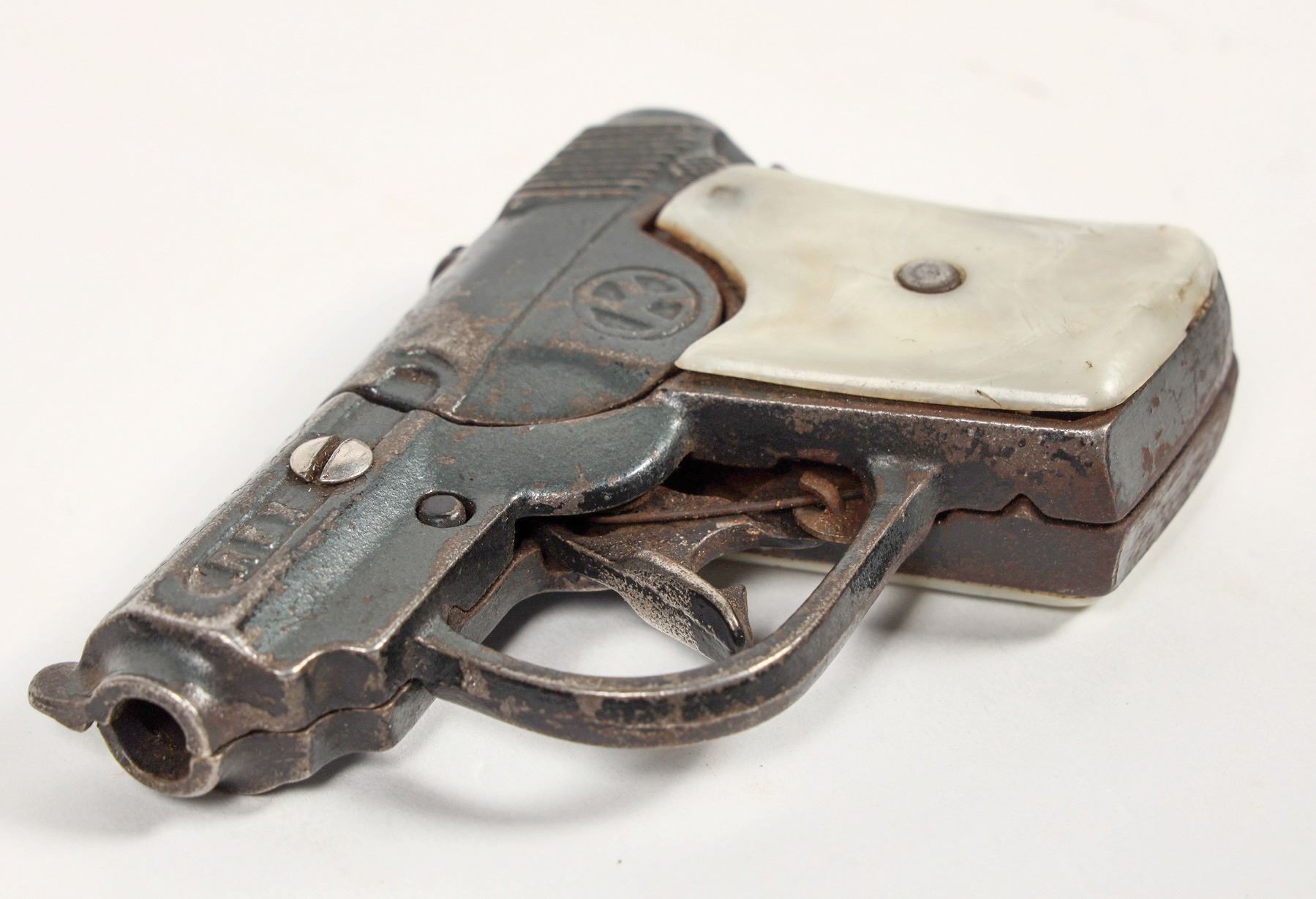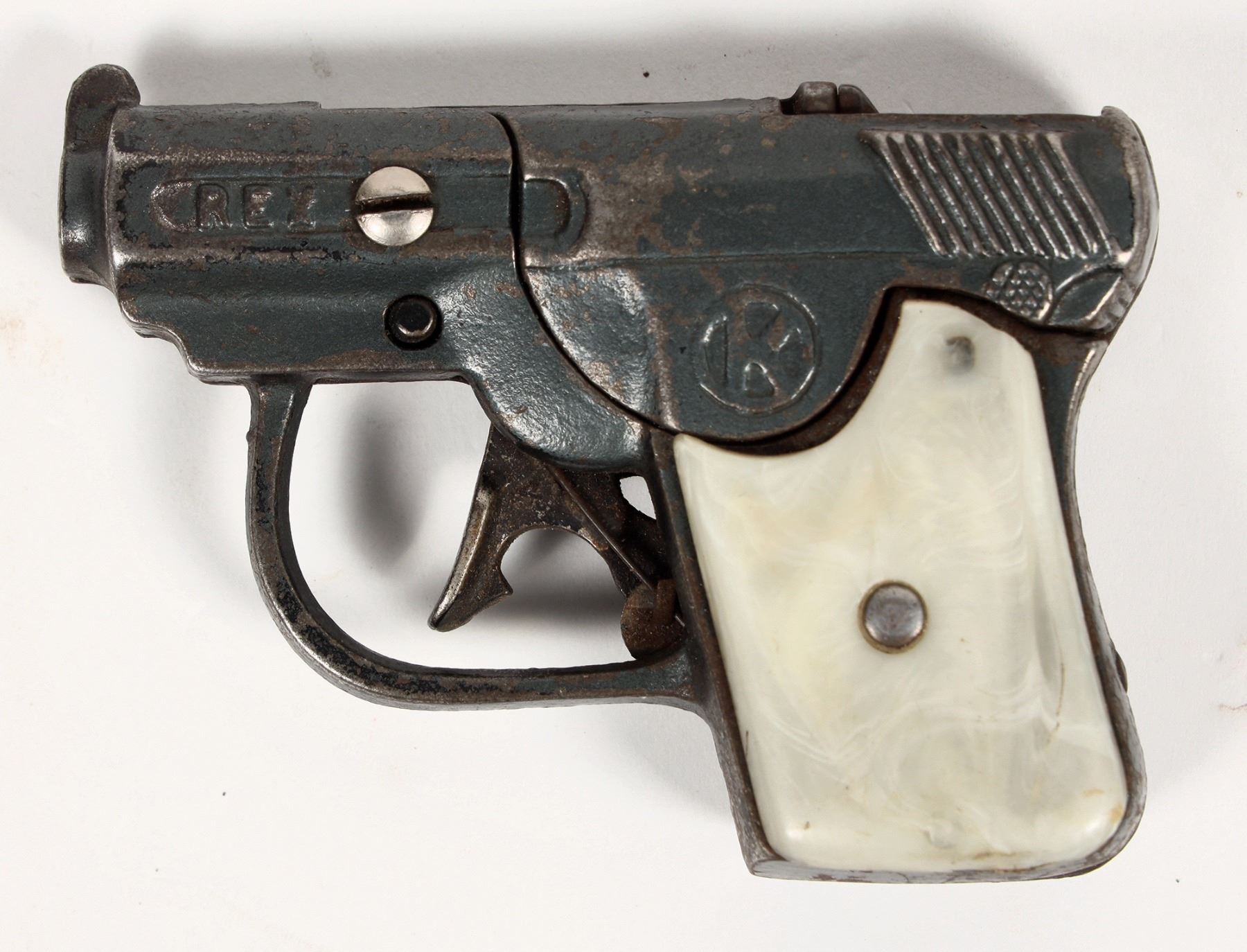 This is a toy pistol made by Kilgore "Rex" at 4 in. A stout little toy gun. C. 1930-1940's. Please see photo for details.