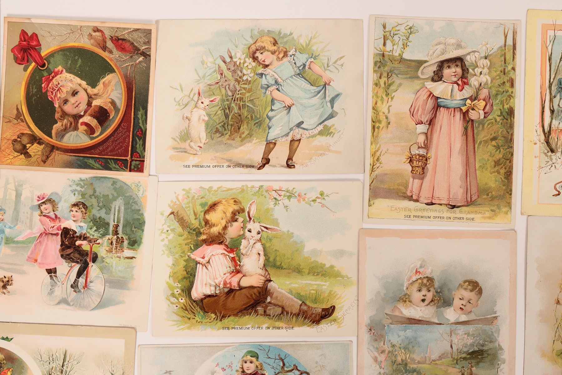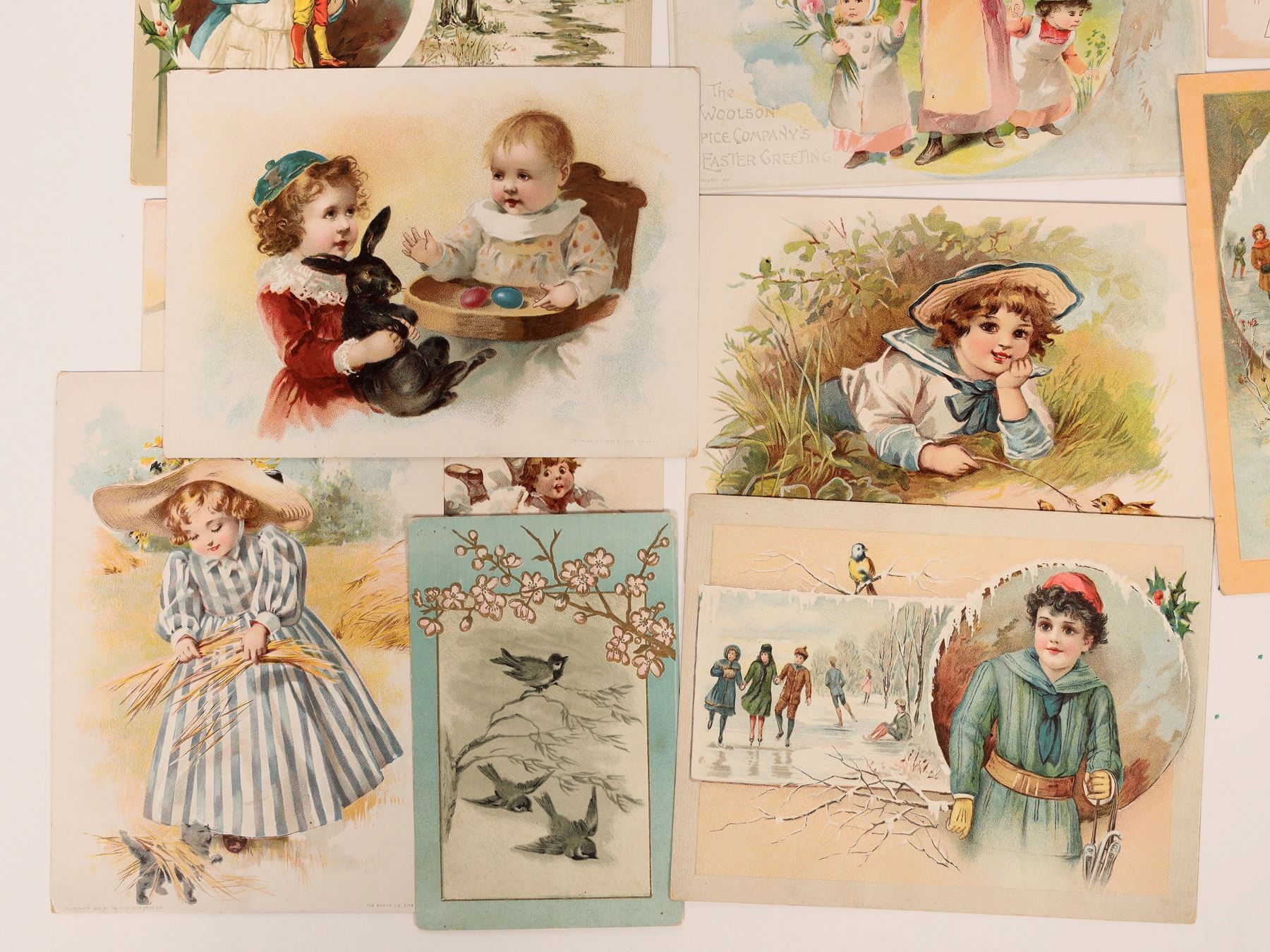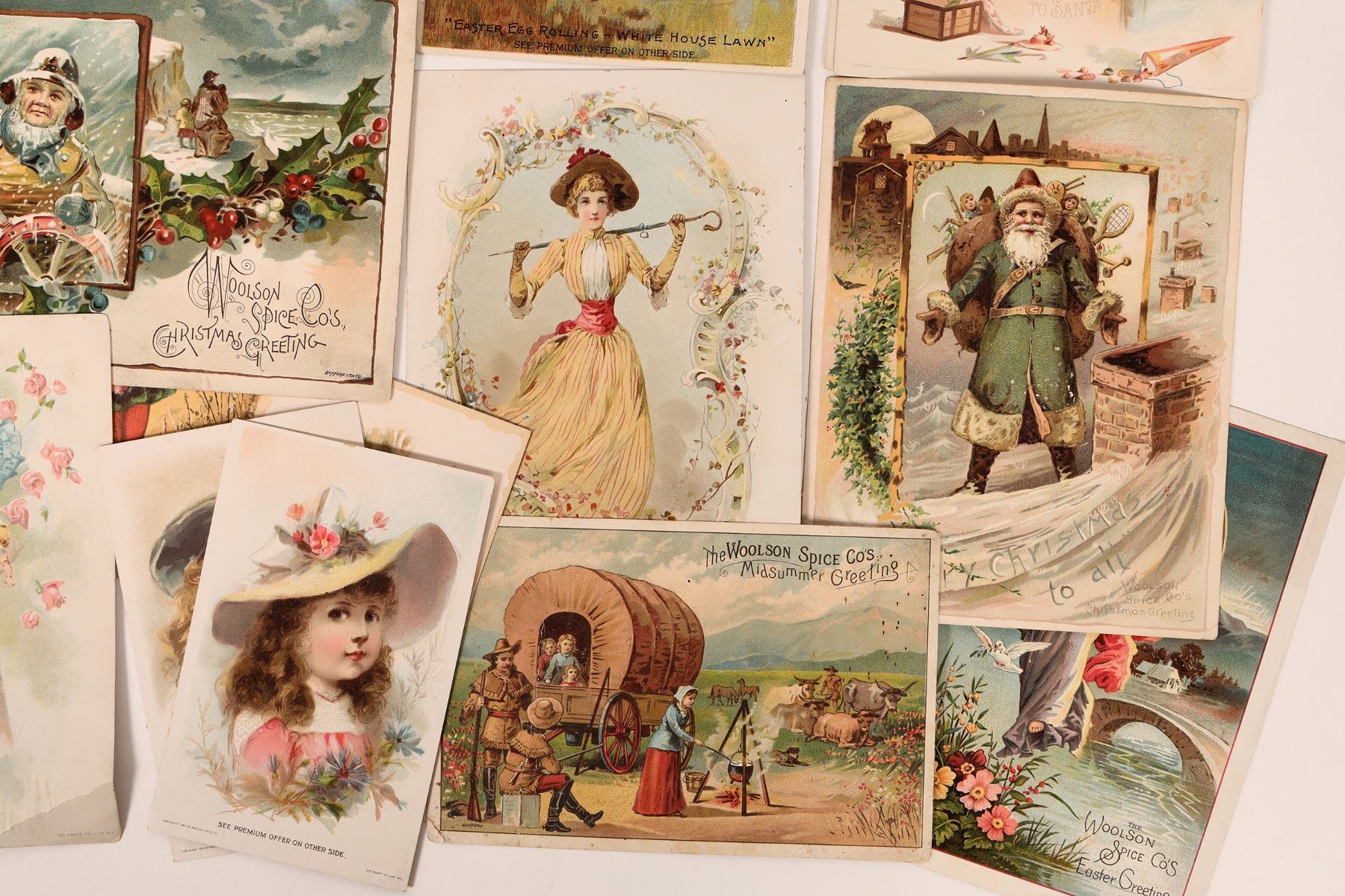 Lot of 42 trade cards promoting Lion Coffee, composed of a successful combination of Mocha, Java and Rio. Manufactured by Woolson Spice Company of Toledo, Ohio. Many large format (5 x 7 inches). All colorful and vintage.