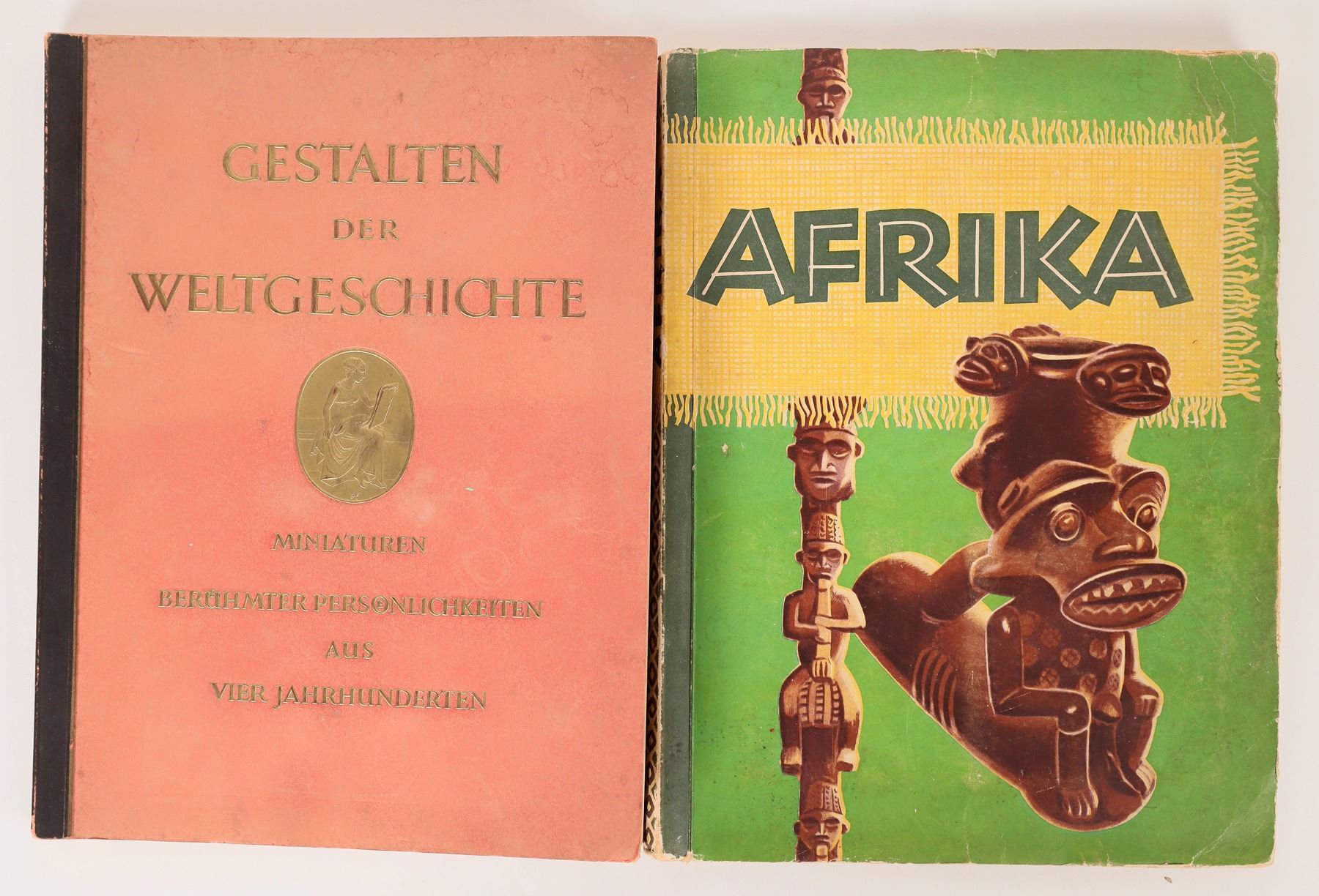 German travel and medieval personalities card books from the 1930s. One appears to be a cigarette insert card group with personalities like Shakespeare and Thomas Mann, among others and the other one is showing various locales in Africa. Please see photos for more details. Africa 1930s