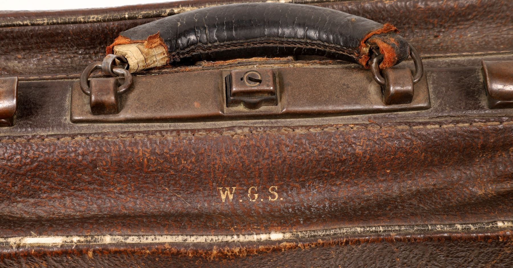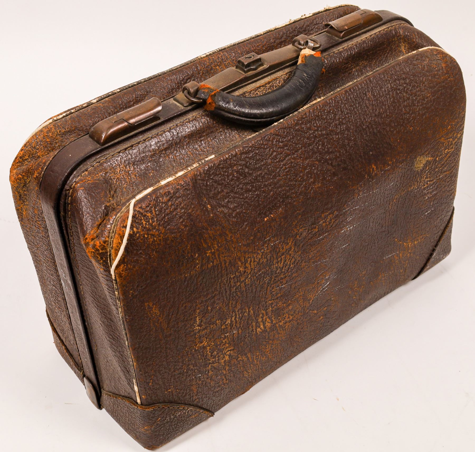 Made of buffalo hide?, the closures still work with some wear. 19" x 7" x 13" turn of the century