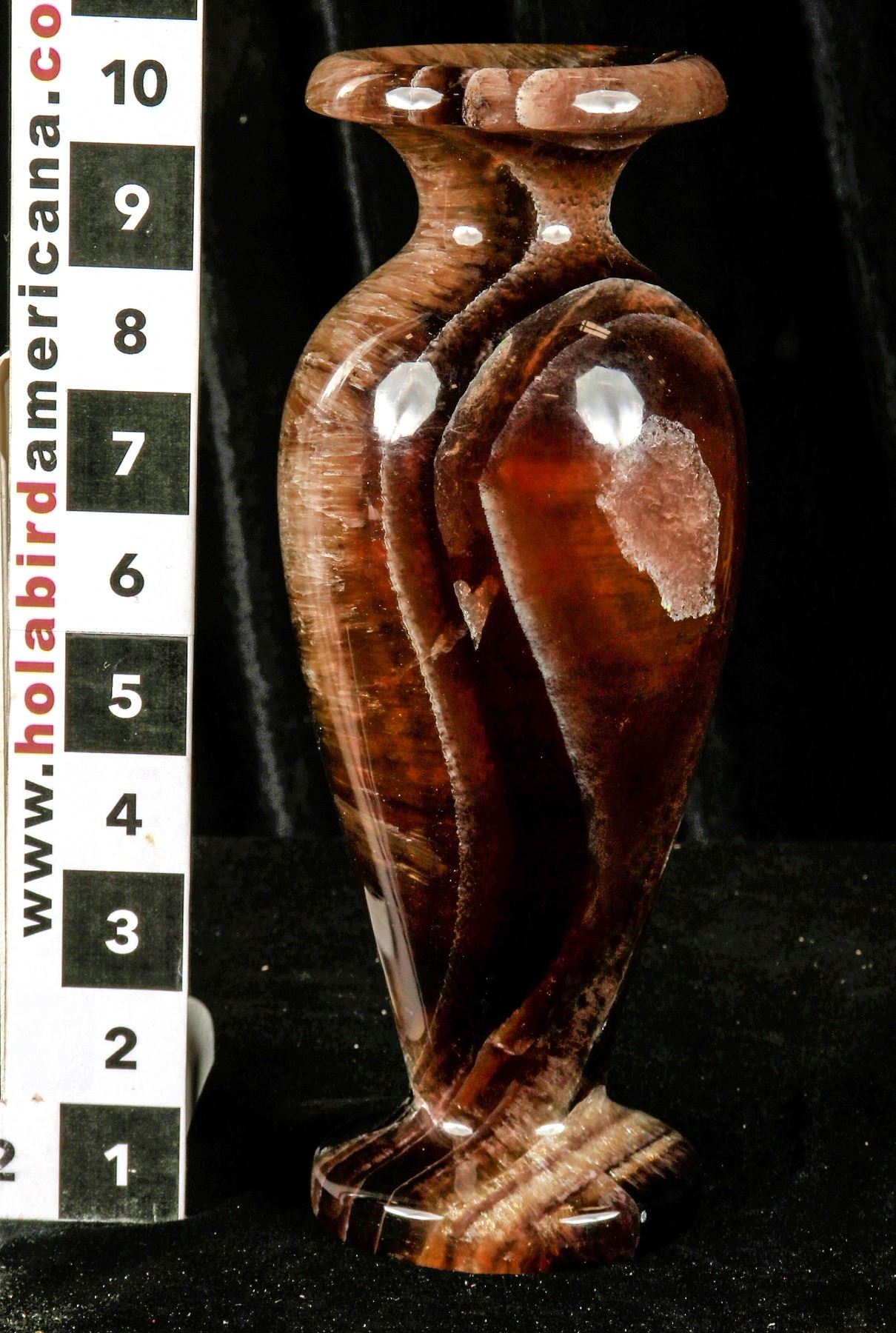 Brown travertine vase measuring 4" x 10" highly polished. Stunning! China Chunlin Zhu Collection