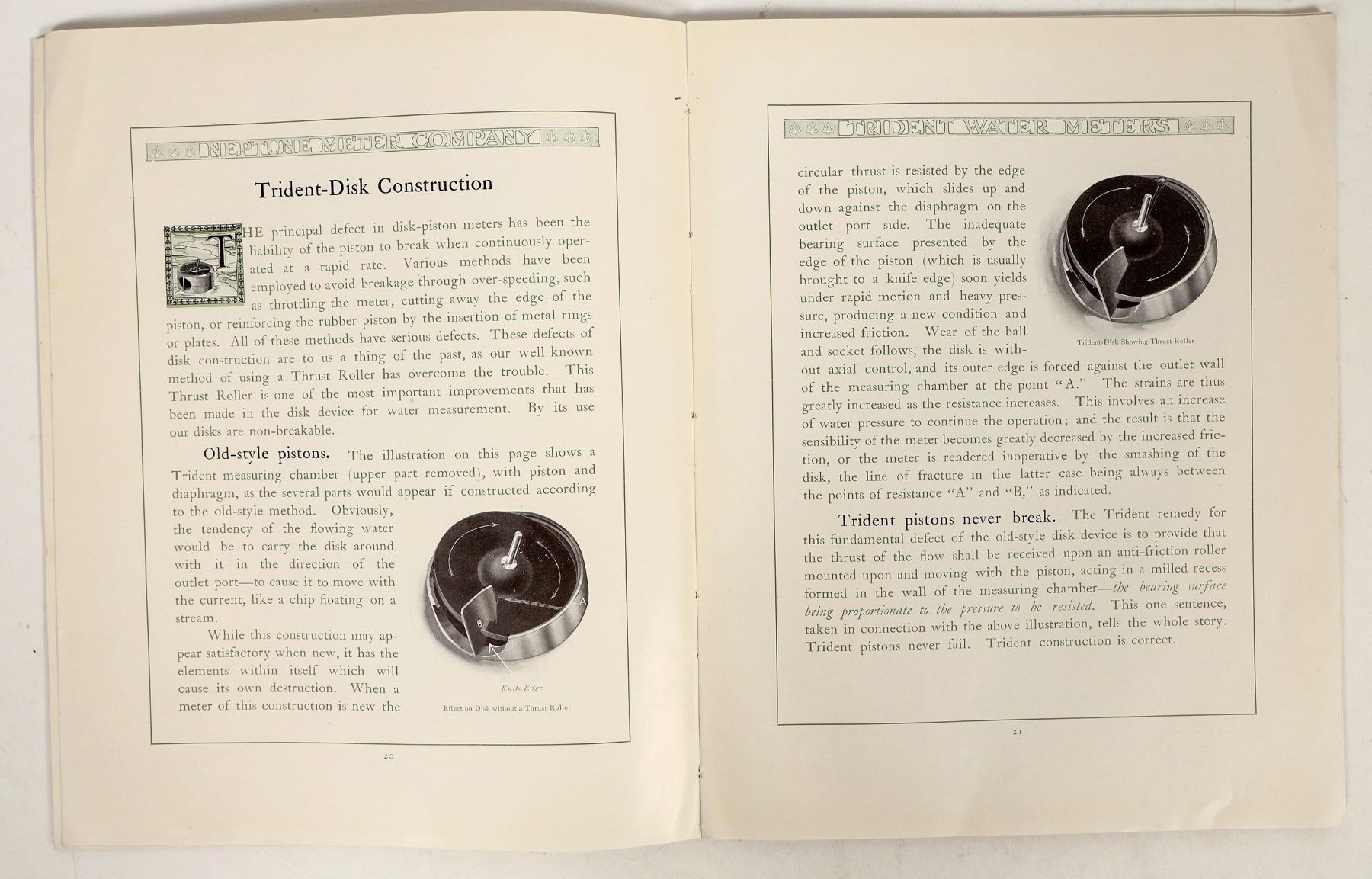 Softcover 63 page (8 x 10 inches) catalog from Trident Water Meters whose factory was in Long Island City.