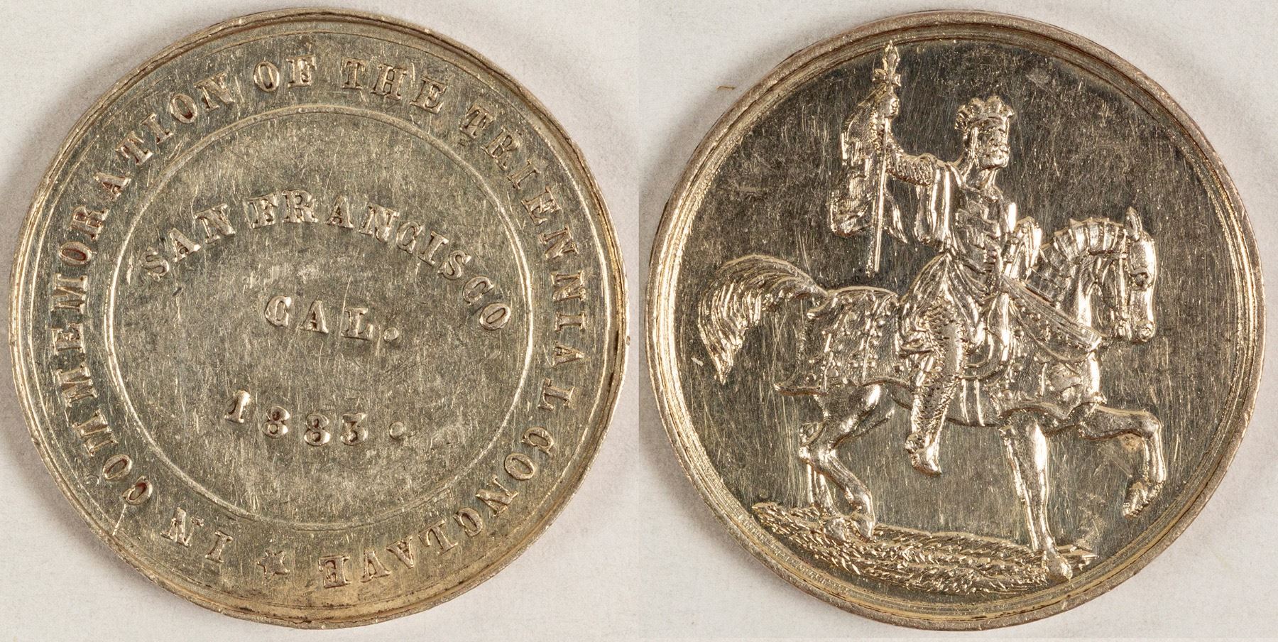 Obv.: pictorial horse and rider; Rev.: Commemoration of the Triennial Conclave/ San Francisco / Cal. / 1883. Silver, rd., 20 mm. State: California City: San Francisco Date: 1883 ID# 78518
