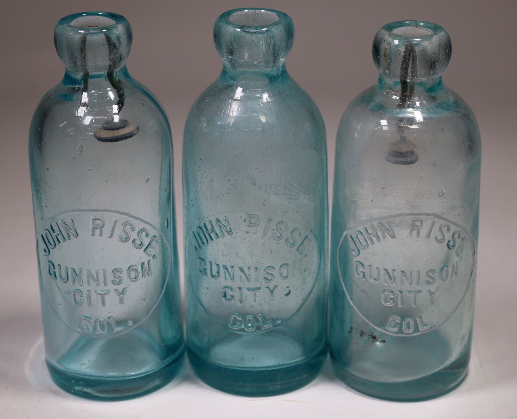 Three variants of the John Risse, Gunnison City, Col. hutch bottle.