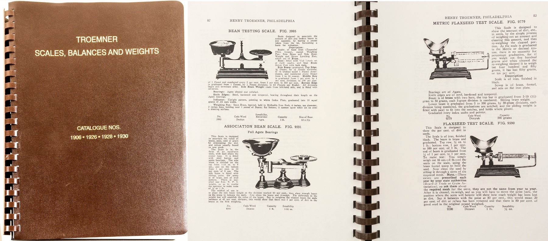 Troemner Scales, Balances and Weights, catalog nos. 1906, 1926, 1928, 1930. New spiral binding, 11.25" x 9.25". Copy of original, by the International Society of Antique Scale Collectors, Chicago, Illinois, January, 1996. Great illustrations! Henry Troemner, 1810-1873.