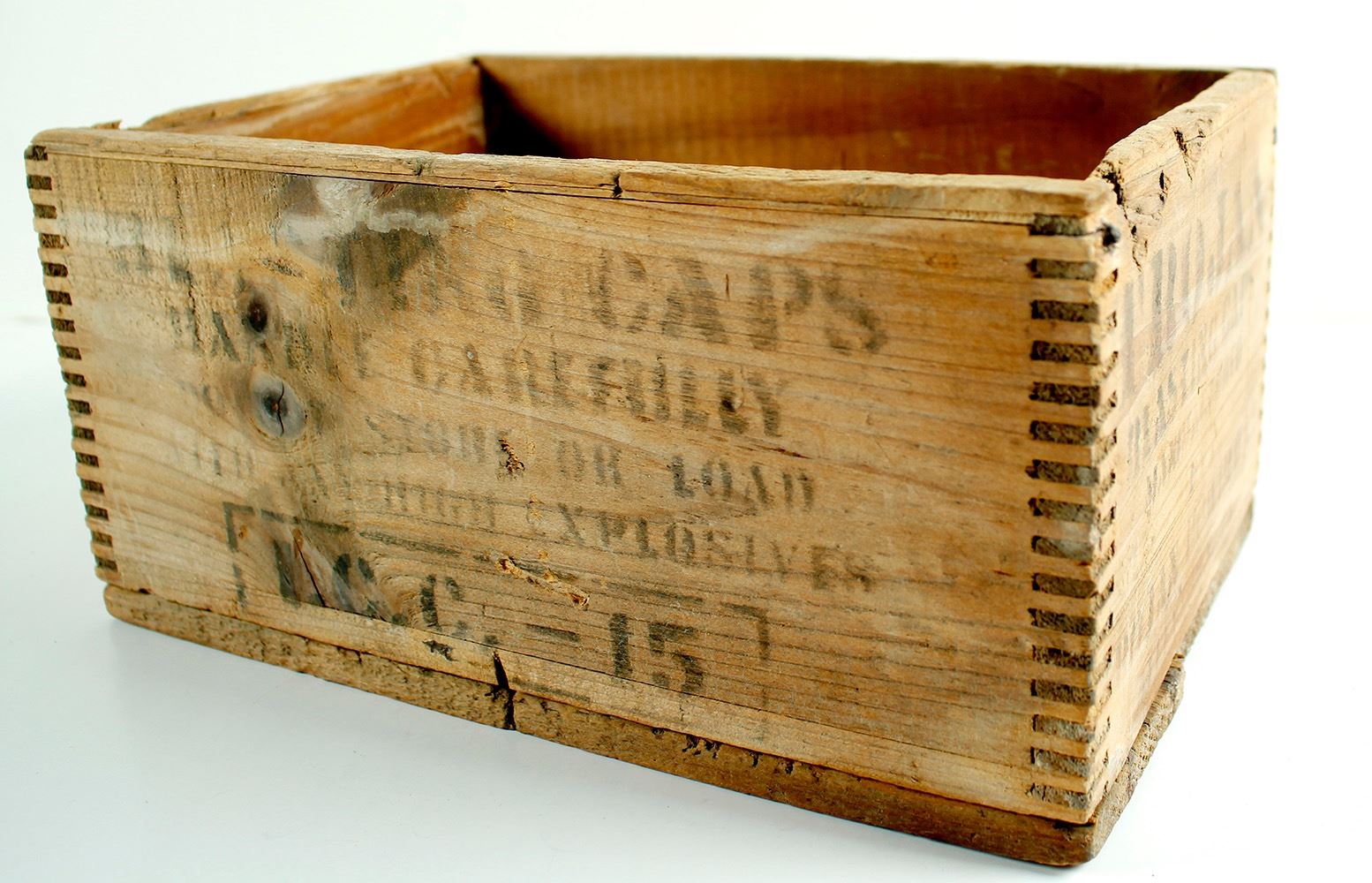 Small 7 x 12" Trojan (Allentown, PA) blasting cap wood box, tongue and groove construction, 7" tall. Black screen lettering on all four sides, as original. Rare. Date: Location: Allentown, Pennsylvania HWAC # 53321