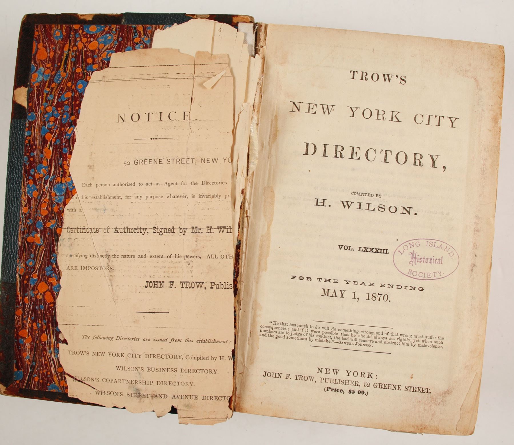 Trow’s New York City Directory Compiled by H. Wilson. Vol LXXXIII. For the Year Ending May 1, 1870. _x000D_
