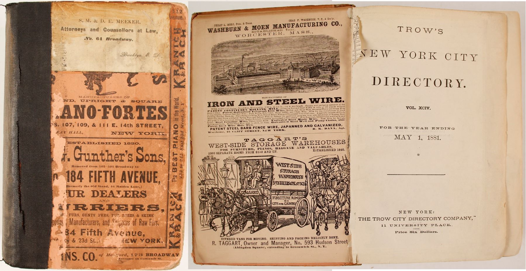 Trow’s New York City Directory, Vol. XCIV for the Year Ending May 1, 1881. Published by The Trow City Directory Company, New York.