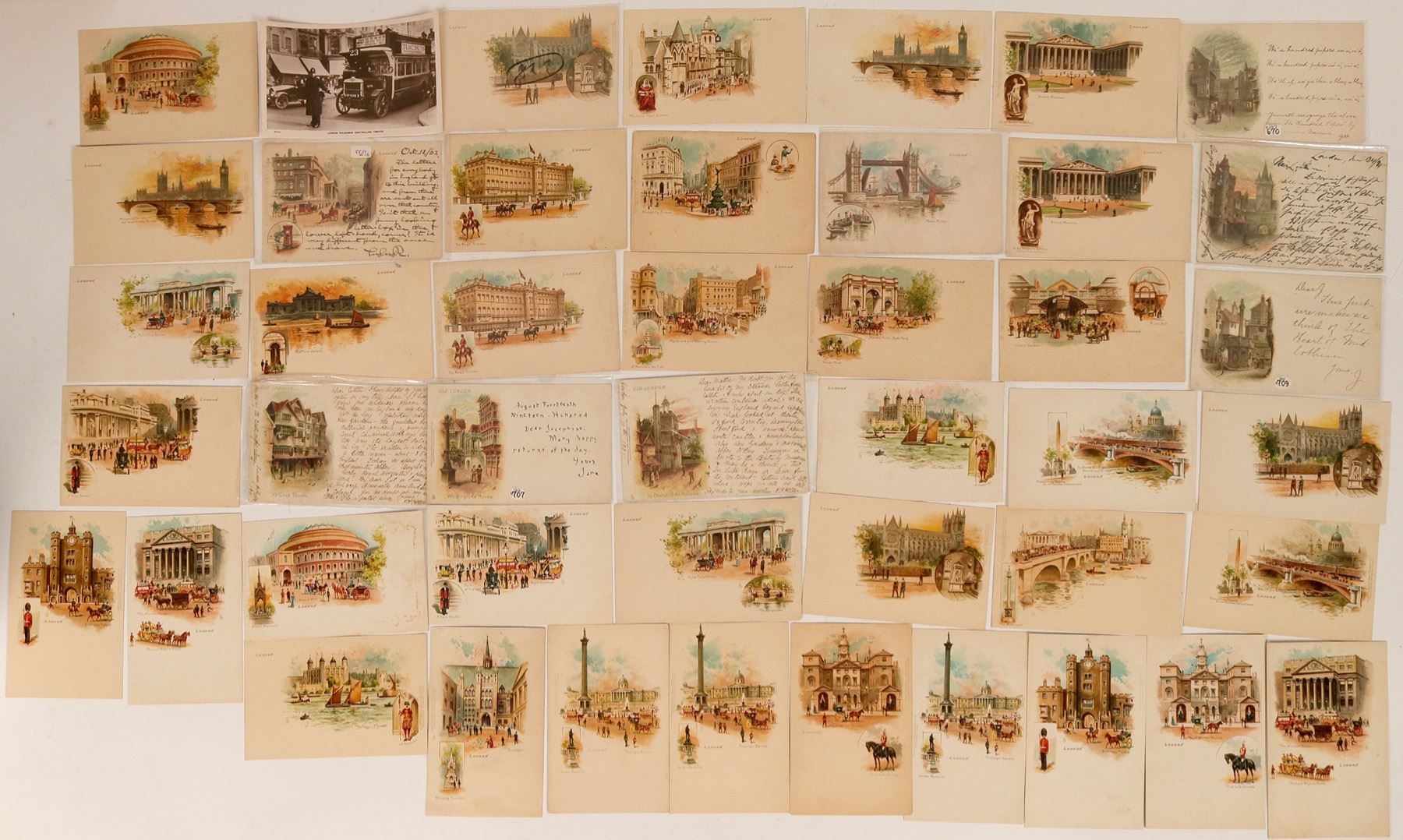 Nice, large group of Tuck postcards. Featuring many areas in London, including Westminster Abbey, Trafalgar Square, Buckingham Palace, Picadilly Circus, and the Houses of Parliament and Westminster Bridge. Beautiful artwork on this grouping of Tuck cards. A highlight includes one real photo postcard of a truck and policeman controlling traffic. See photos to enjoy this fantastic group.