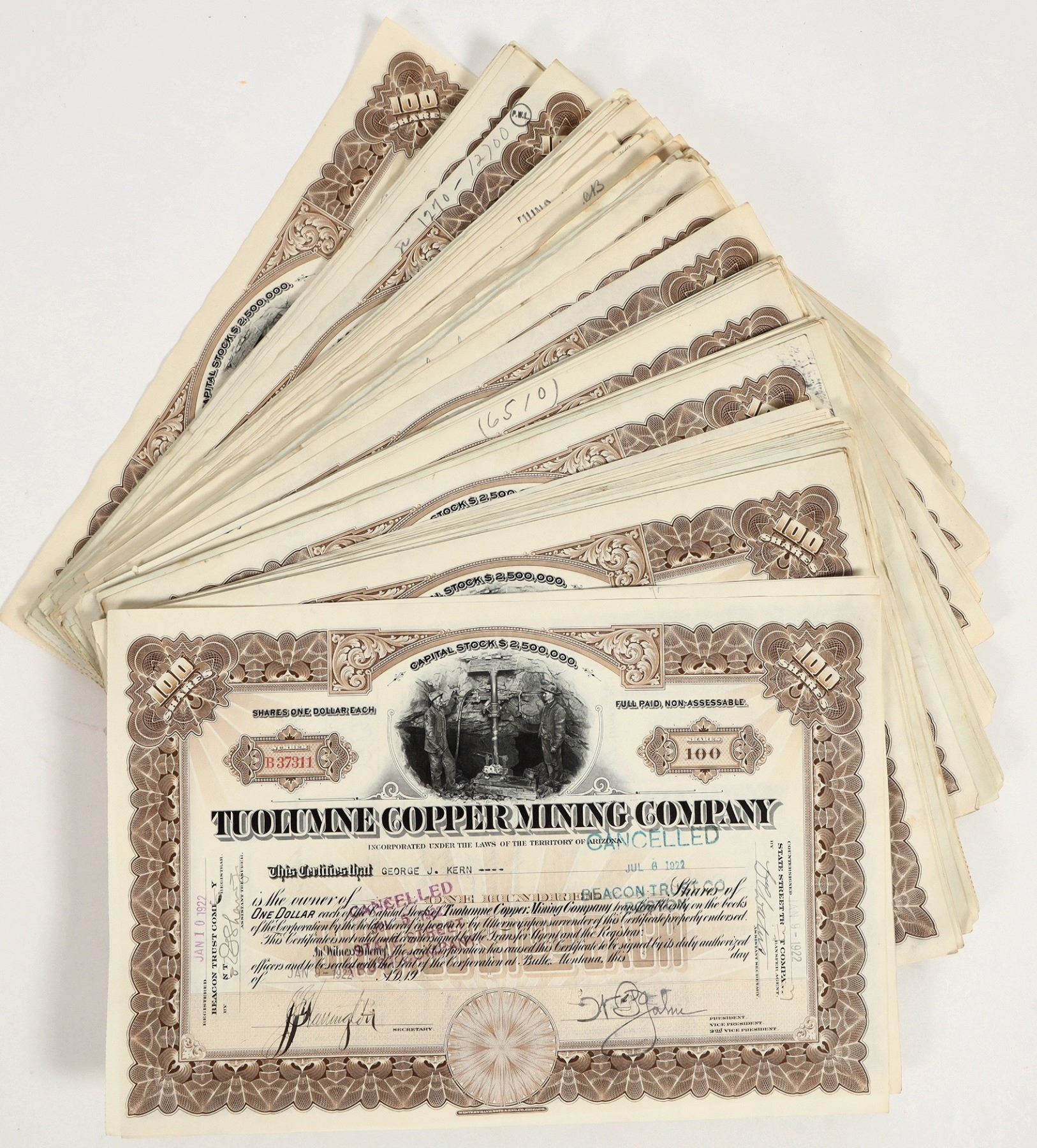 Tuolumne Copper Mining Company Stock Certificates - (200) [205861]