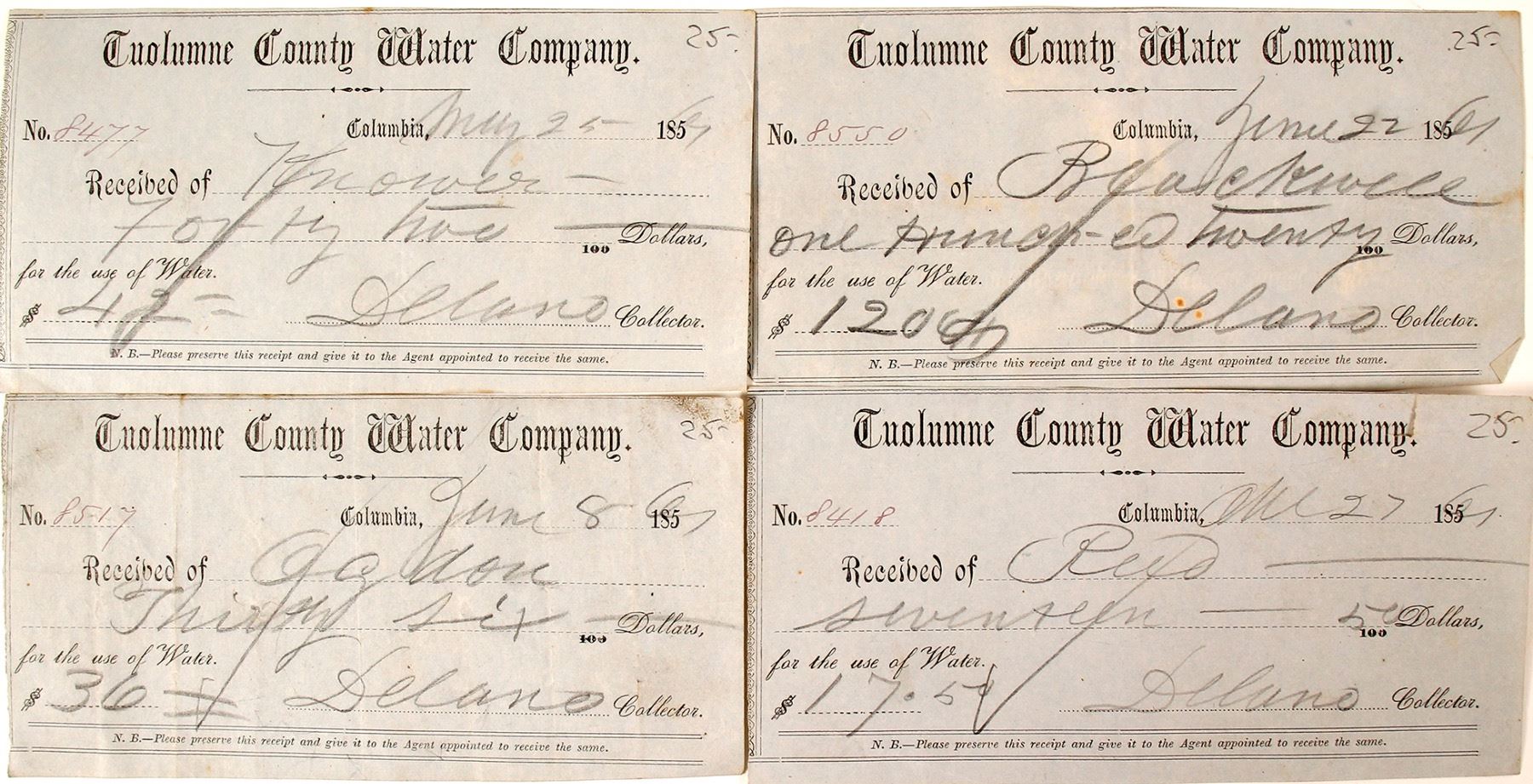 4 blue receipts (Potter Collection) HWAC# 58949 Date: c. 1850's Location: Tuolumne County, California
