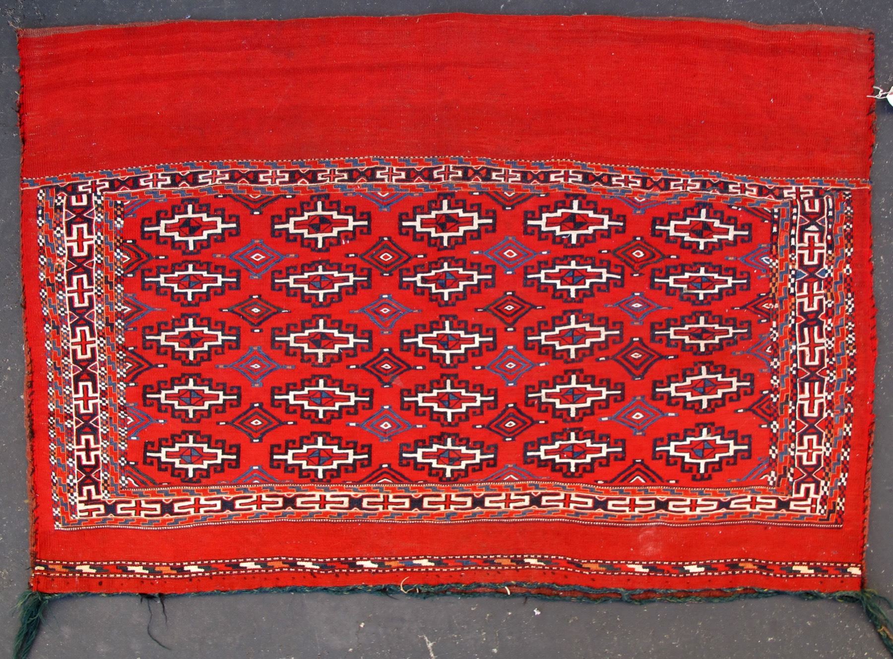 In 1990 and shortly thereafter, when the borders of Azerbaijan, Georgia & Armenia opened, a good number of old Caucasian soumak pieces appeared in the international markets. Now these supplies have been nearly exhausted, & once again it has become difficult to locate good early examples. (By Marla Mallett) Has some wear, please inspect. 4' x 2'.6".