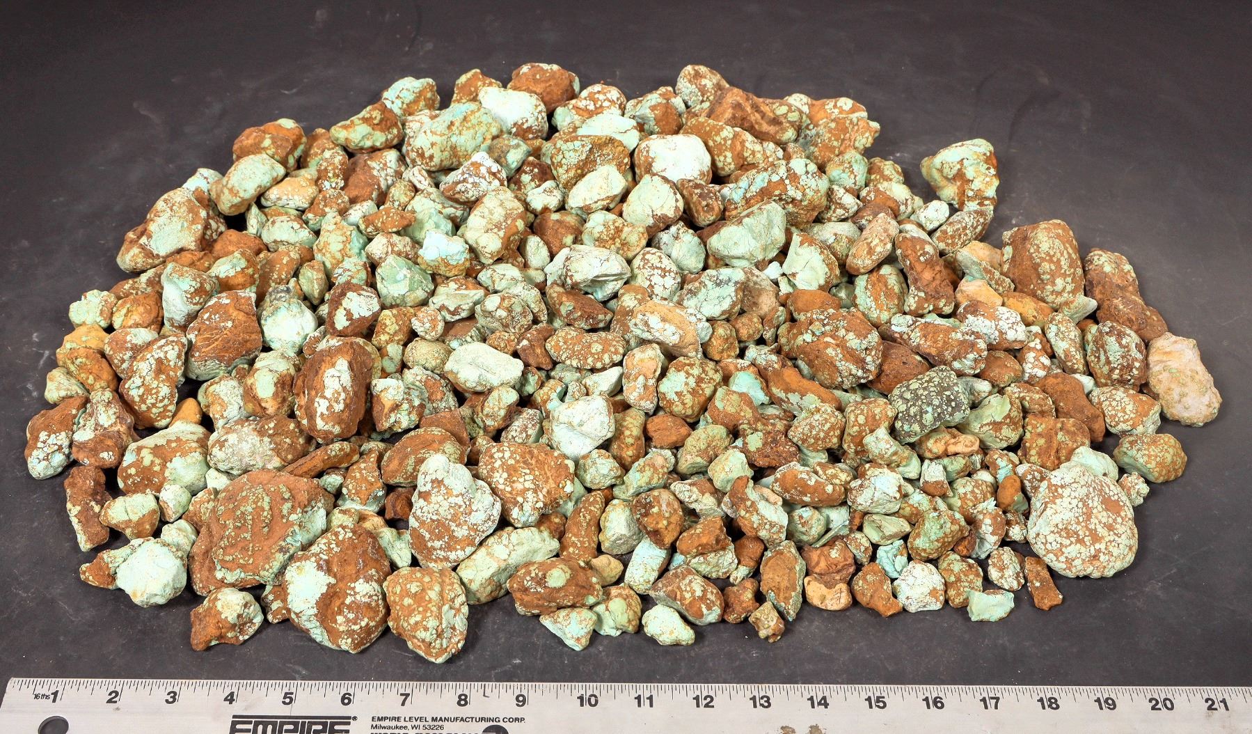 Rough turquoise - small-medium oxidized nuggets, light green color with some spiderweb. Untreated. Approximate weight 16.0 pounds. Pieces range from around 1" to 2.5" in length. Lovely color on these; see photos. This turquoise originates from the No. 8 turquoise mine of Cortez, Nevada, often considered one of the top turquoise mines in the world. It was previously in storage for 35 years.