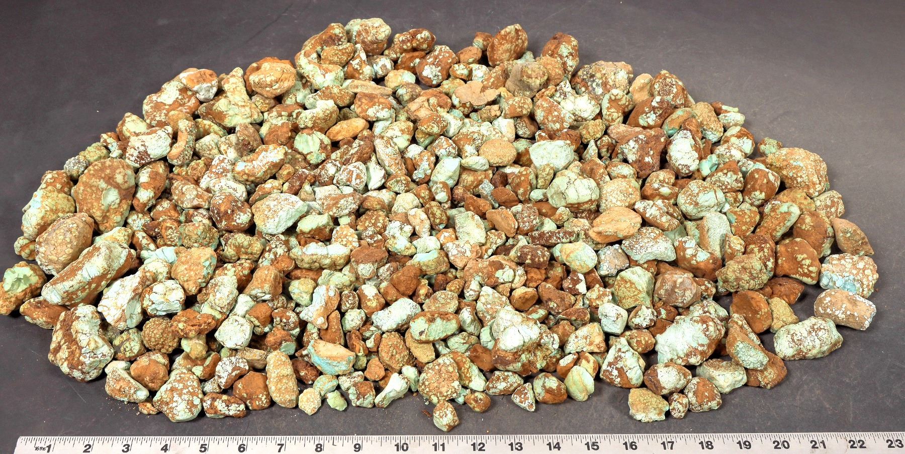 Rough turquoise - small-medium oxidized nuggets, light green color with some spiderweb. Untreated. Approximate weight 18.8 pounds. Pieces range from around 1" to 2" in length. Lovely color on these; see photos. This turquoise originates from the No. 8 turquoise mine of Cortez, Nevada, often considered one of the top turquoise mines in the world. It was previously in storage for 35 years.