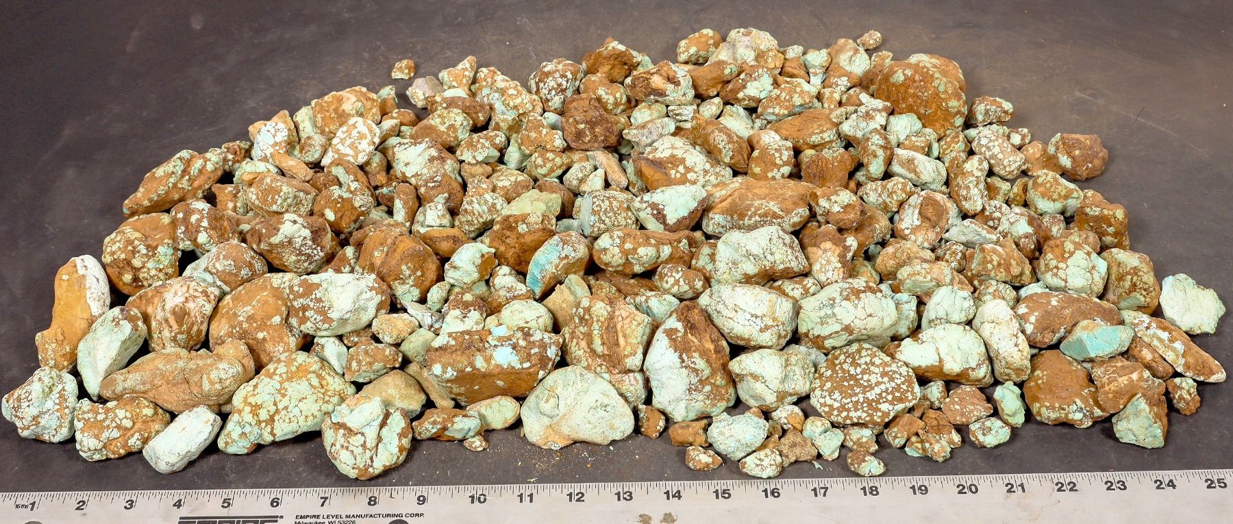 Rough turquoise - small-medium oxidized nuggets, light green color with some spiderweb. Untreated. Approximate weight 15.6 pounds. Pieces range from around 1" to 2.5" in length. Lovely color on these; see photos. This turquoise originates from the No. 8 turquoise mine of Cortez, Nevada, often considered one of the top turquoise mines in the world. It was previously in storage for 35 years.