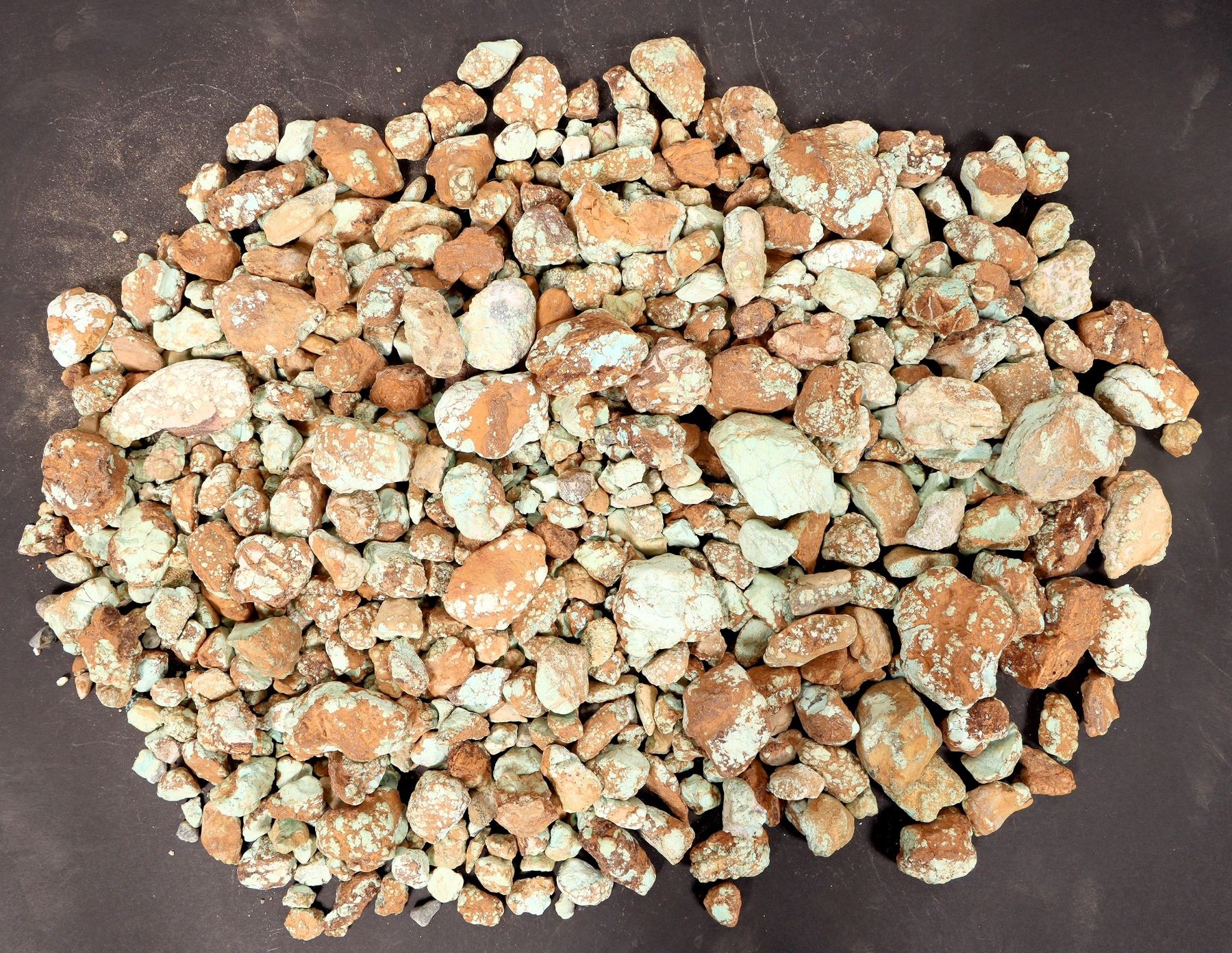 Rough turquoise - small-medium oxidized nuggets and chunks, pale green color. Untreated. Approximate weight 14.2 pounds. Pieces range from around .5" to 2.75" in length, largest piece in lot measures approx. 2.75" x 2" x 1.5" at widest points. This turquoise originates from the No. 8 turquoise mine of Cortez, Nevada, often considered one of the top turquoise mines in the world. It was previously in storage for 35 years.