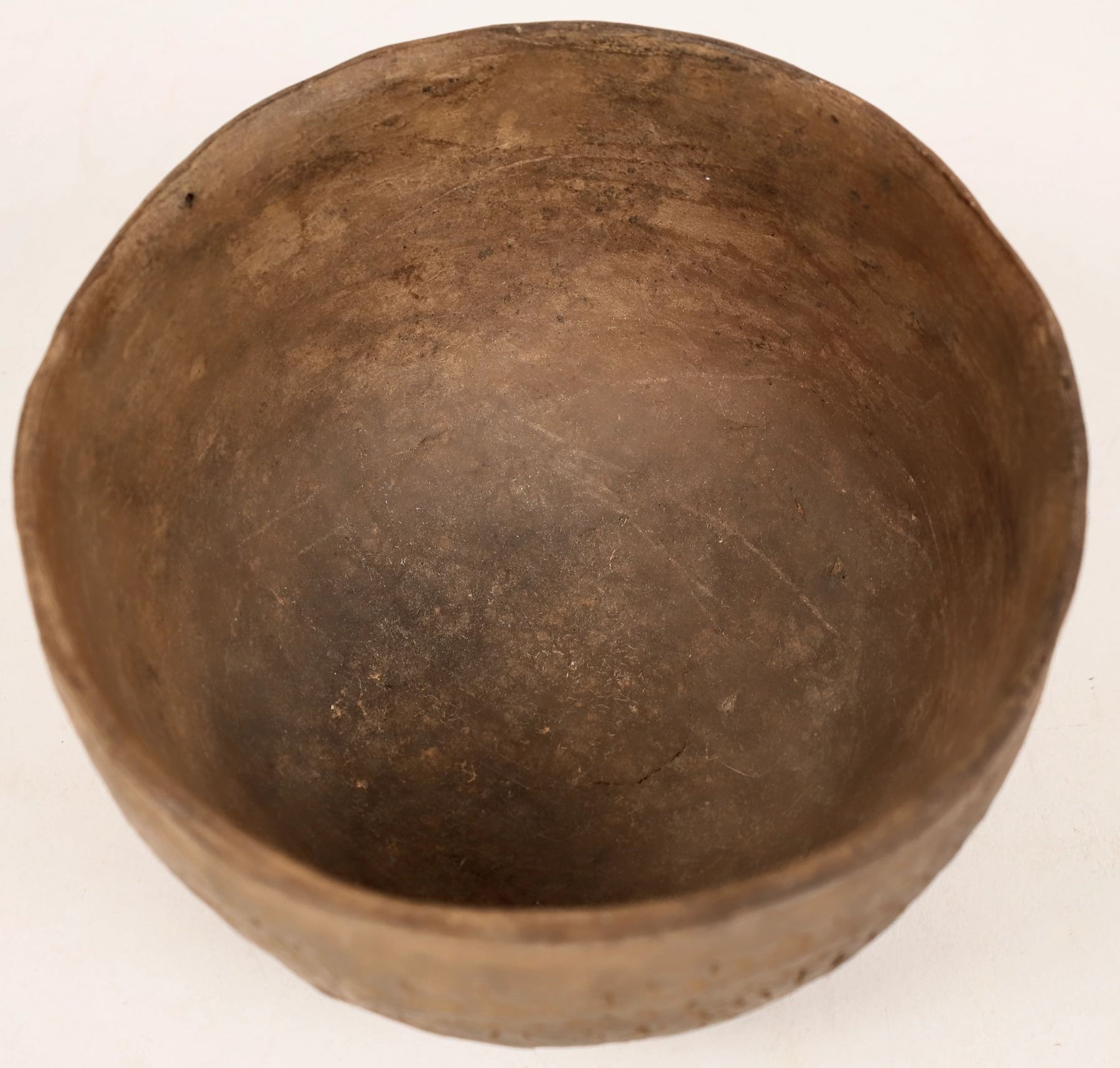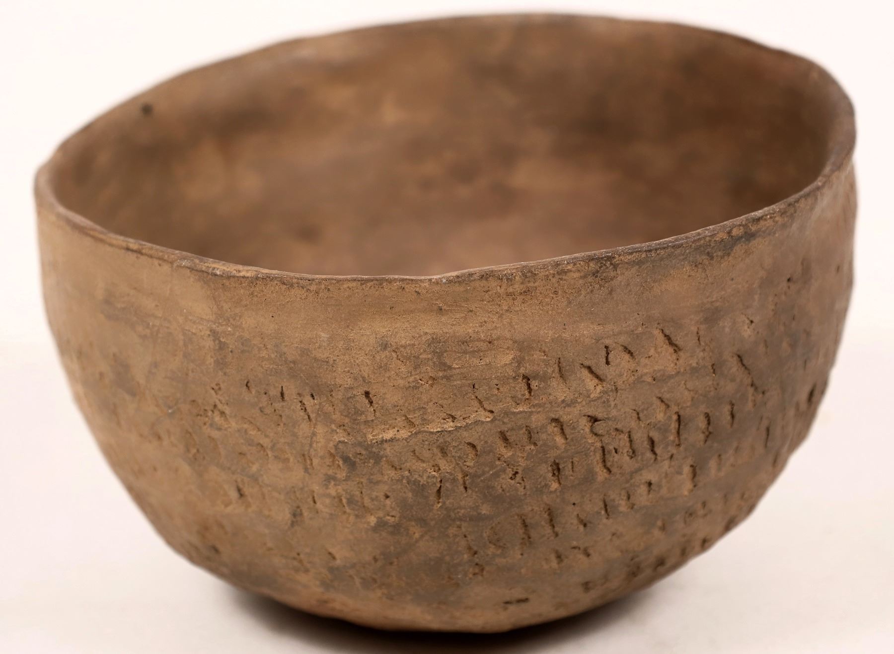 Ancient Tusayan bowl with fingernail-like exterior hashmarks. 2.75"x5". Small cracks, please inspect. Arizona Gary Bracken Collection