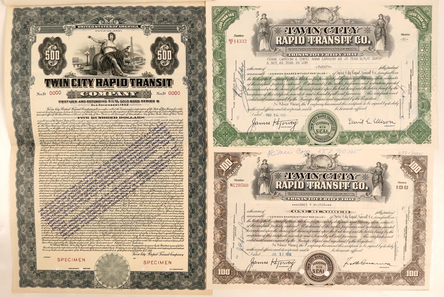 Three certificates. The Twin City Rapid Transit Company (TCRT), also known as Twin City Lines in 1890 a merger of two city systems, the St. Paul City Railway Co. and Minneapolis Street Railway, formed the Twin City Rapid Transit Company.