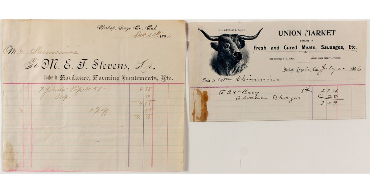 1) Union Market. 1896. J. L. Bourland, Prop. Nice steer pictorial. 2) M. E. T Stevens. Hardware. 1890.