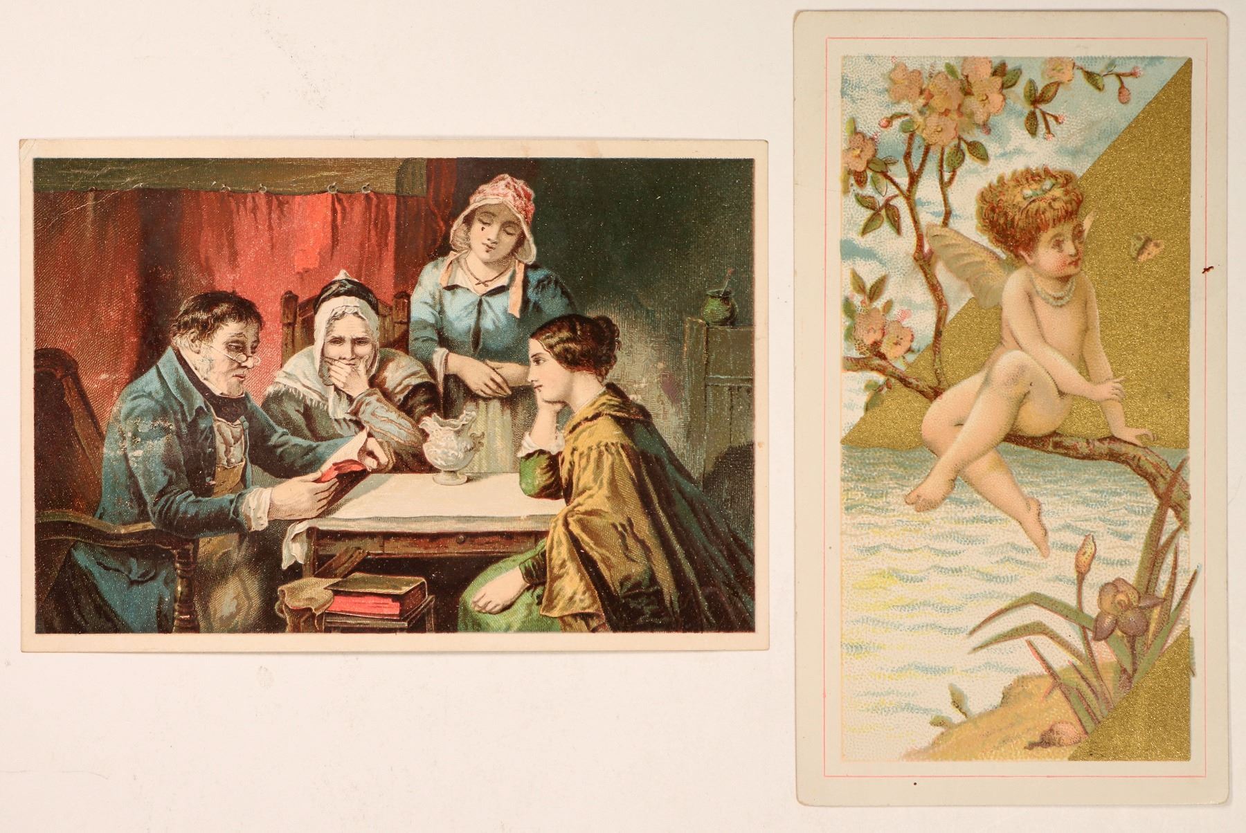 Trades cards (2), including the Eureka Social Club, for a Valentine's Day party in 1884 and a pharmacy called W.W. Haley & Company of Alameda, Ca. Slight yellowing on each. Please see photos for more details.