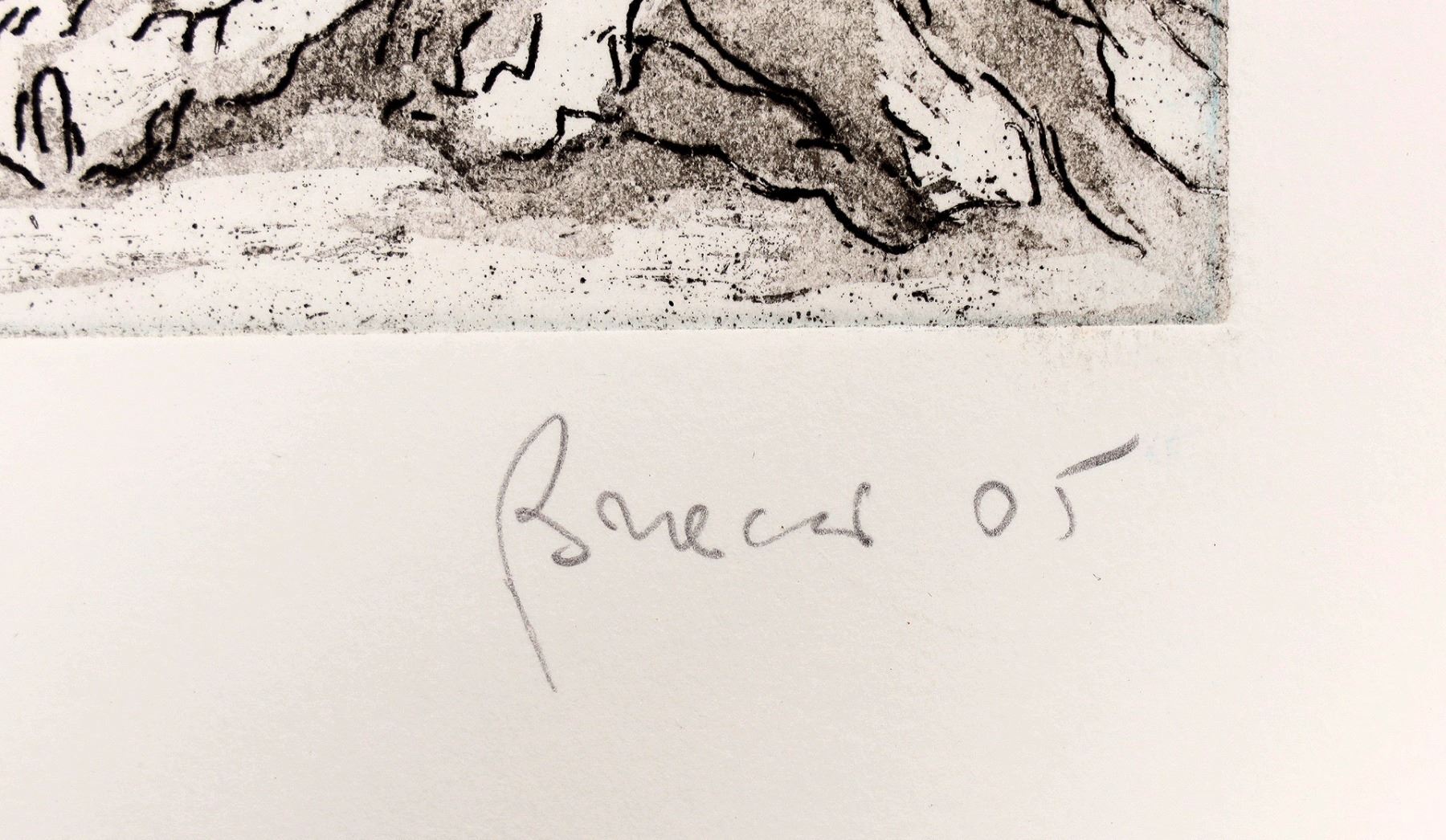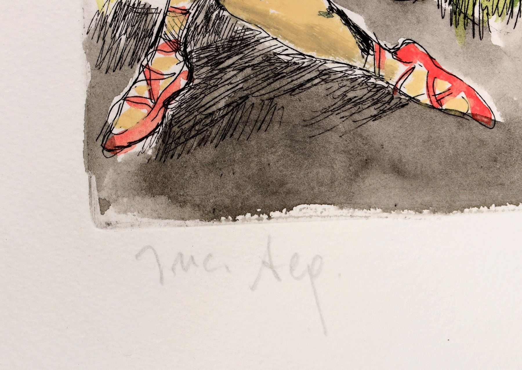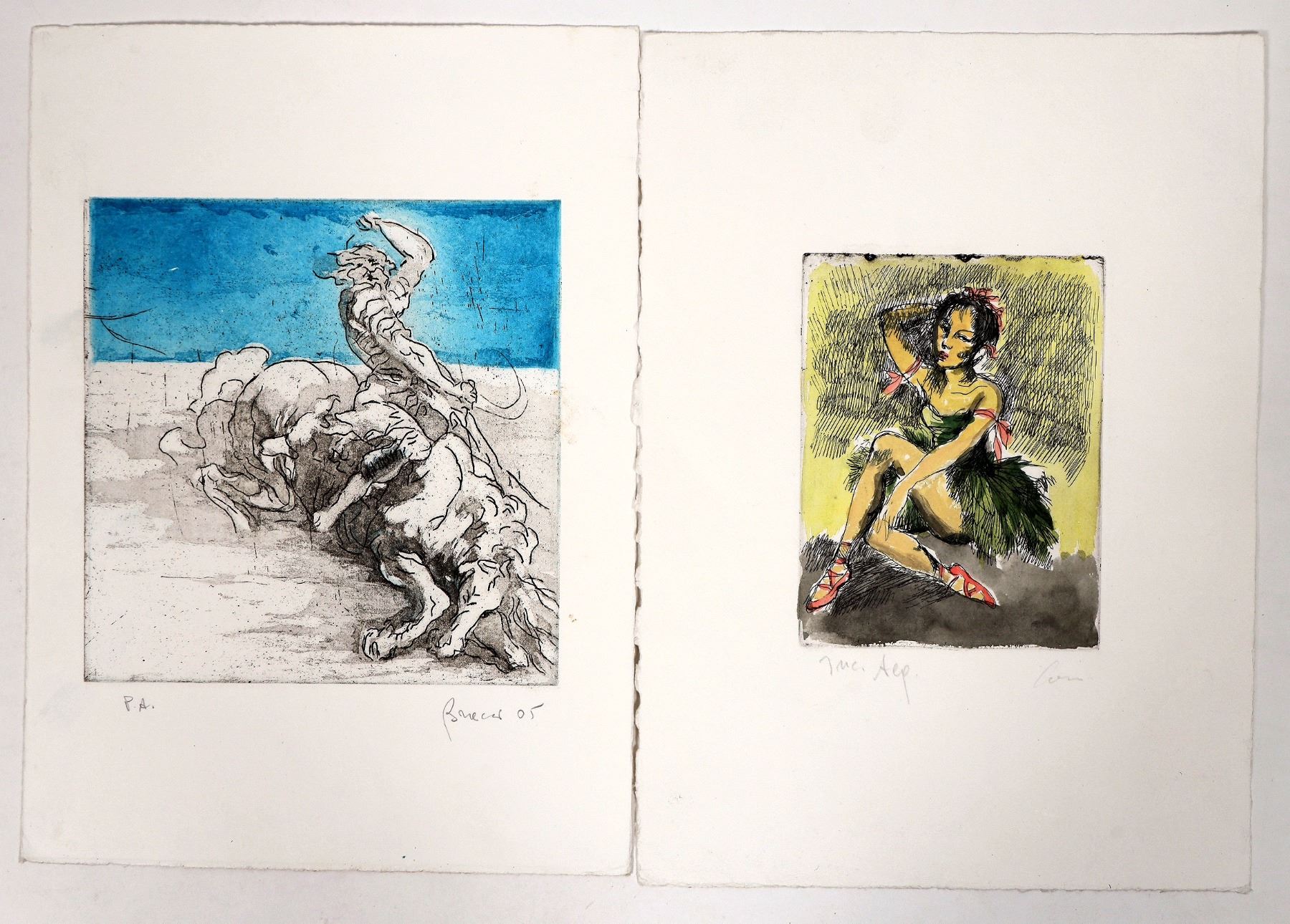 Print one: Rider on a bucking horse in the style of Claude Weisbuch. The print is an artist's proof and is signed, however we cannot determine the artist's name. The second color lithograph is of a seated ballet dancer. It is an artist's proof, signed illegibly.