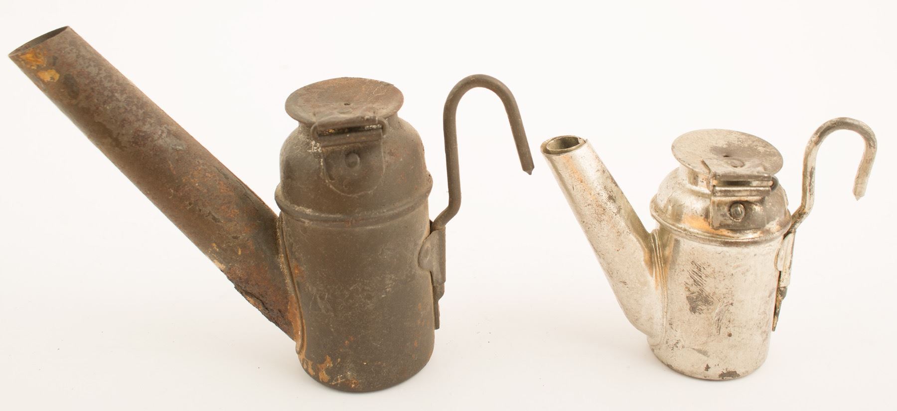 Two different embossed dome Dunlap lamps. One is near mint, the small size, while the other is about twice as big but not mint. A nice pair.