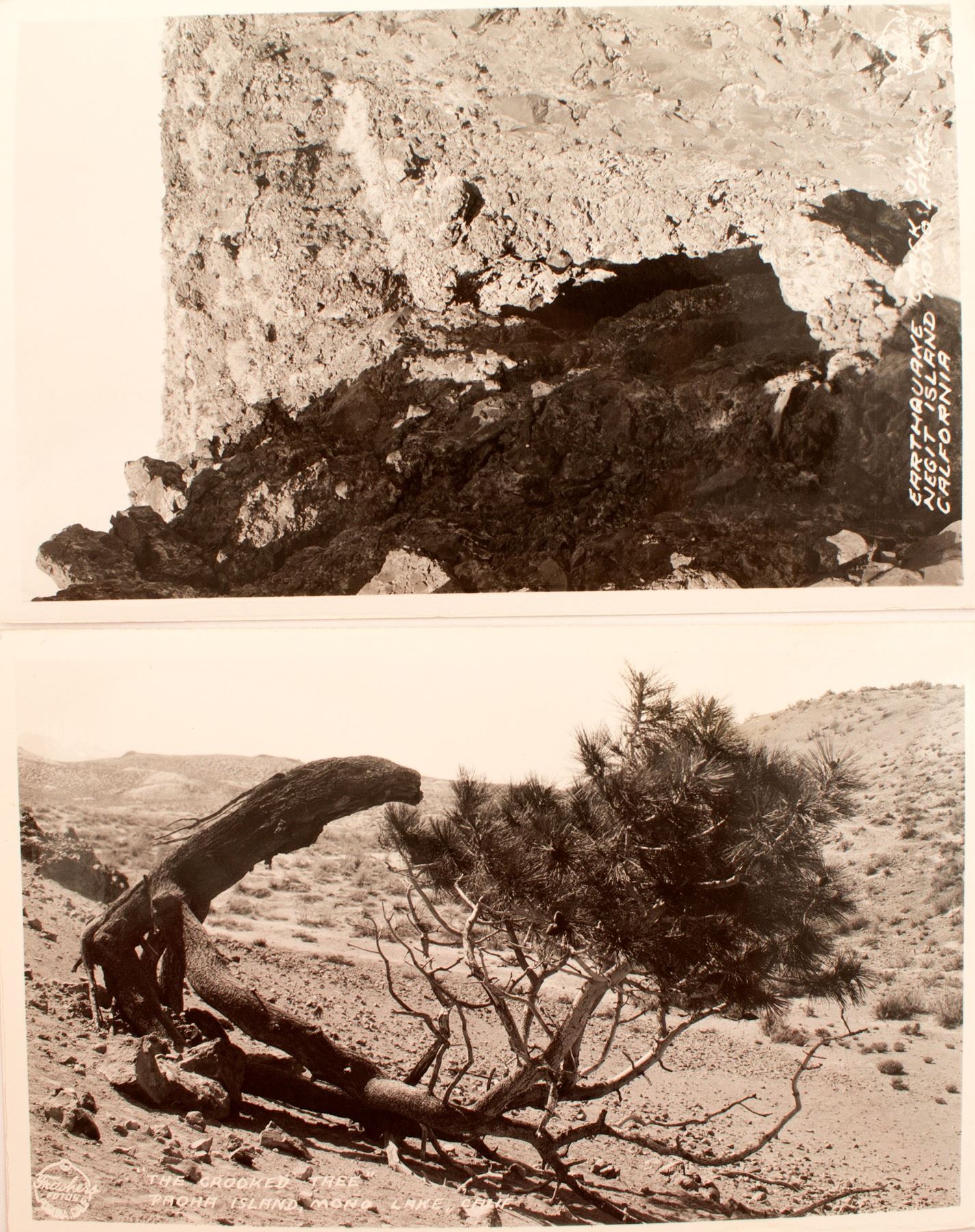 Lot of two: 1) "The Crooked Tree" Paoha Island, Mono Lake Calif. Taken by Frasher Photos. 2) Earthquake crack on Negit Island, Mono Lake, California, also by Frasher. State: California City: Mono Lake HWAC#: 48620 Date: