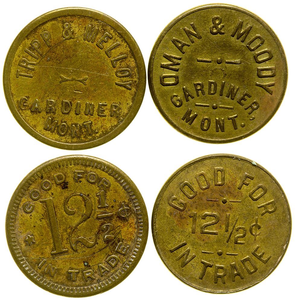 Oman & Moody / Gardiner, / Mont. //GF / 12 1/2c / IT , rarity 7. Tripp & Melloy / Gardiner / Mont. // GF / 12 1/2c / IT, rarity 7. City: Gardiner State: Montana Date: ID: 36439