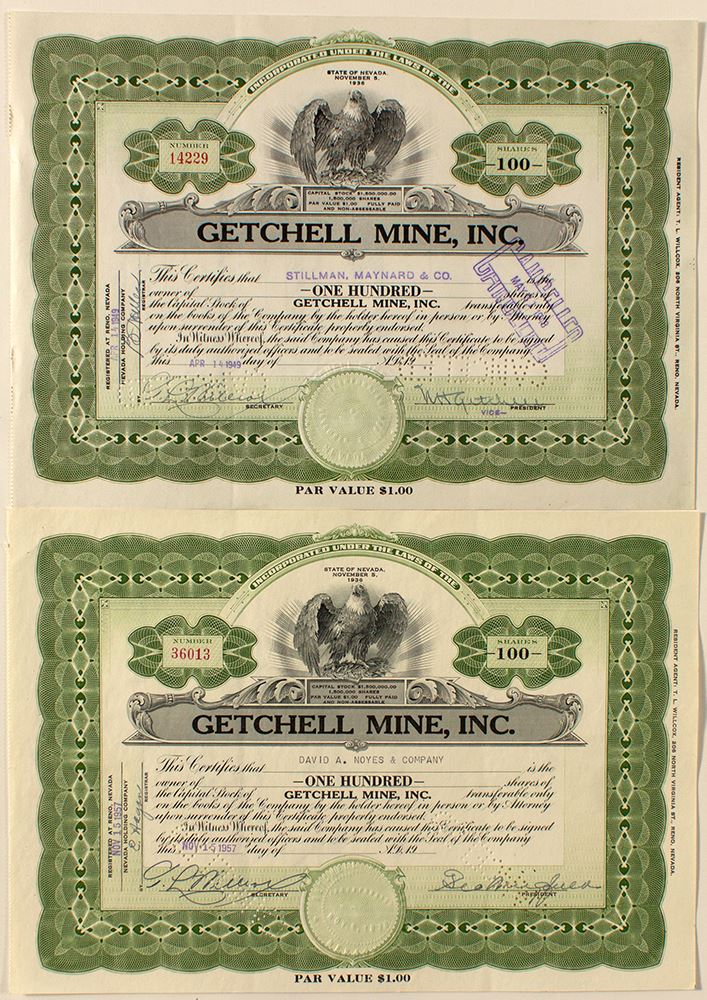 One signed by Noble Getchell, other by George Wingfield, Getchell's partner.