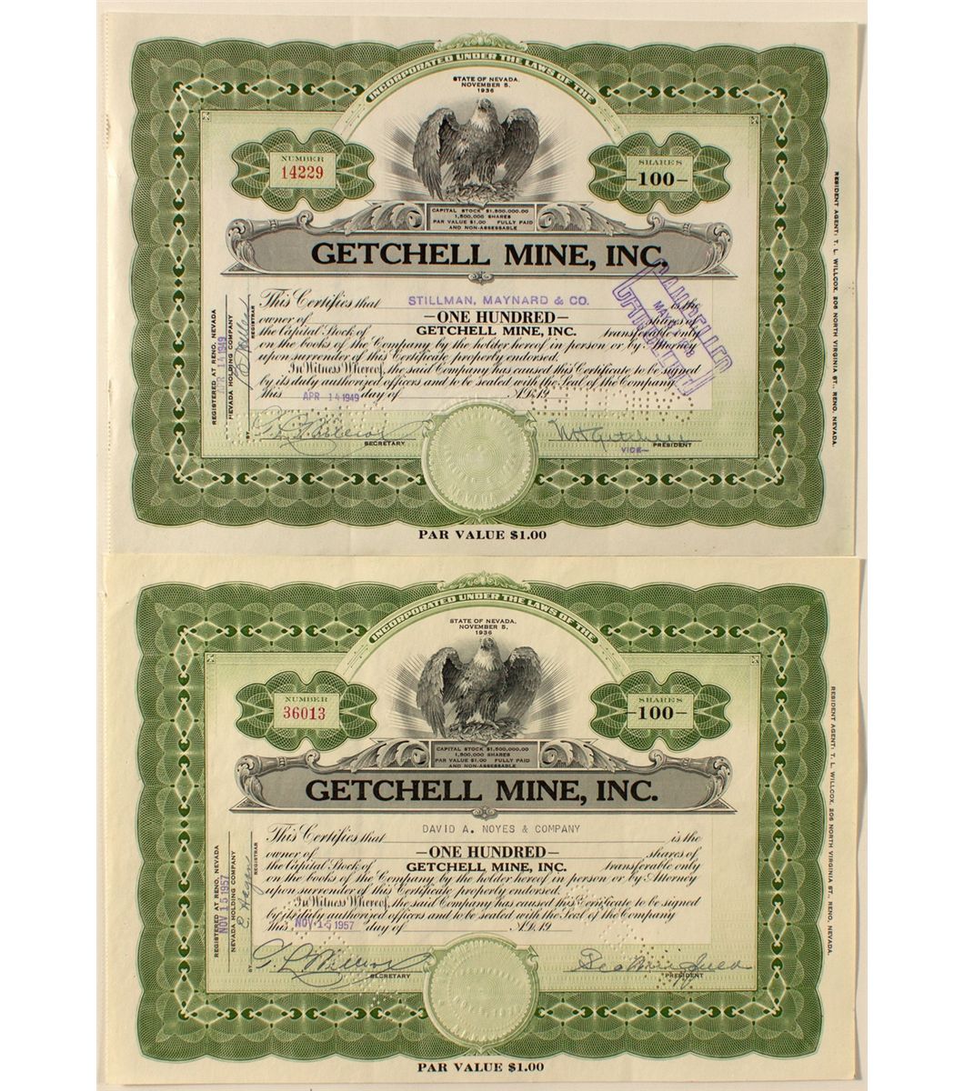 One signed by Noble Getchell, other by George Wingfield, Getchell's partner. Date c1950 Getchell, NV hwac 20538