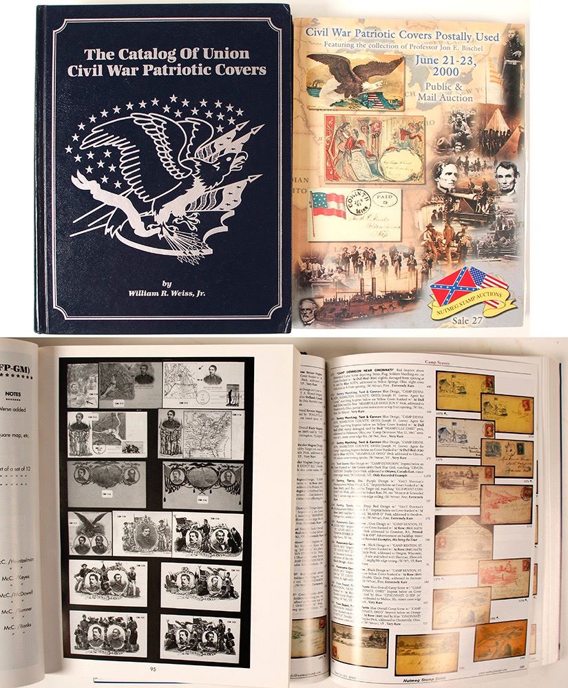Two key references on Civil War covers. The catalog of Union Civil War patriotic covers by William Weiss Junior, hardbound, 1995 reprint of the 1928 original, 839 pages. Contains illustrations of all the spectacular Civil War patriotic covers. The group also contains Civil War patriotic covers use postally featuring the collection of Prof. John Fishel, June 2000, Nutmeg stamp auctions Catalog. Just under 400 pages, softbound. Two volumes are an absolute reference for any collector of Civil War covers (Potter Collection) Date: Location: HWAC# 59362