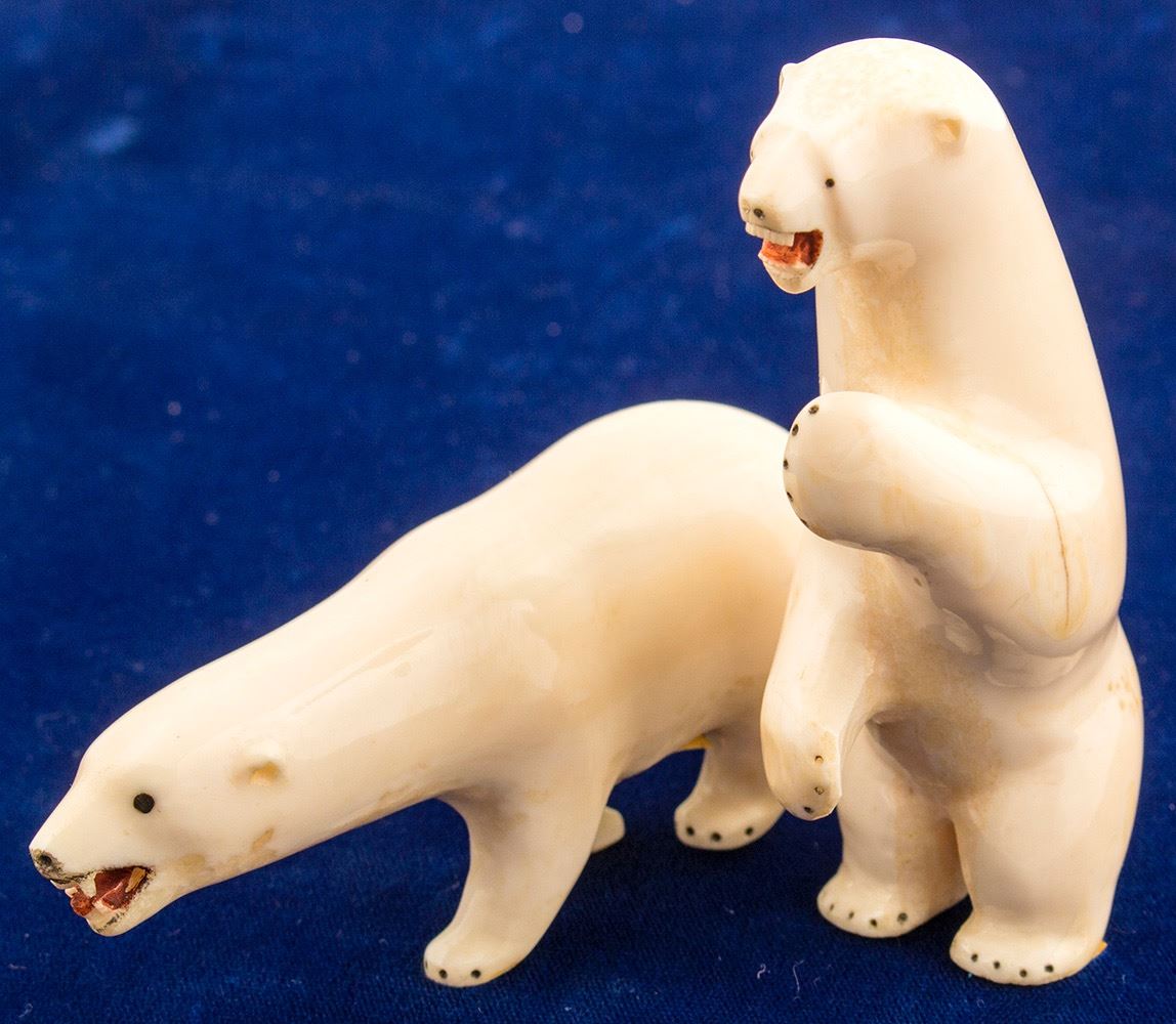 Two very nice examples. 1) Walking. 4" long. 2) Standing. 4" tall. Particular detail has been paid to the mouth, nose and eyes. Toes are also highlighted.