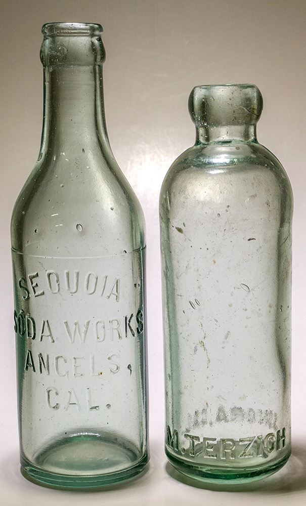 Two southern mother lode soda bottles. Terzich from Sonora, aqua Hutch soda bottle. Mint. Sequoia, Angels Camp, aqua Crown top dead mint. HWAC# 47612 Date: Location: California