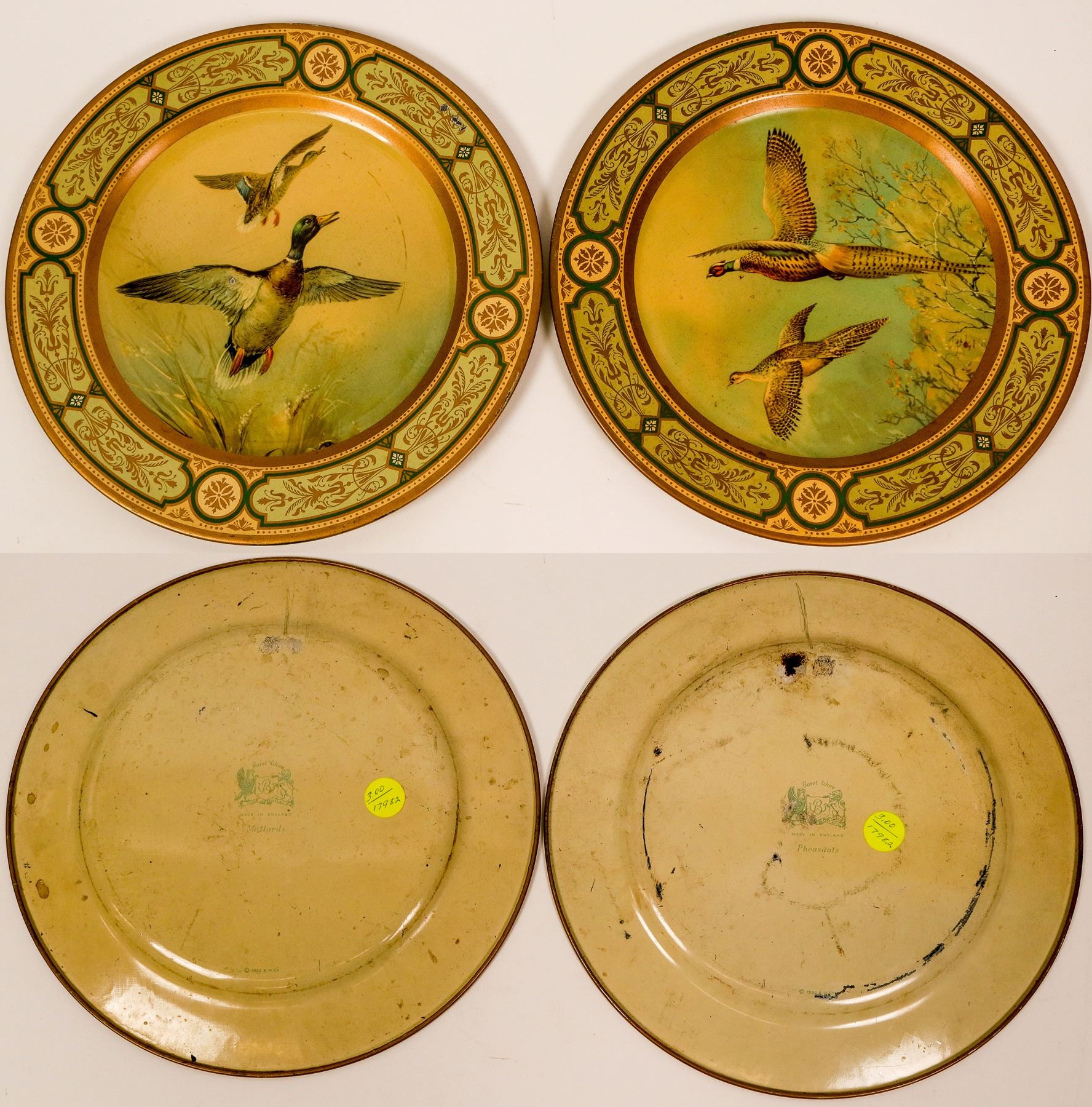 This is a lot of two aluminum decorated plates; one with Mallard ducks, the other with pheasants. Made in England.