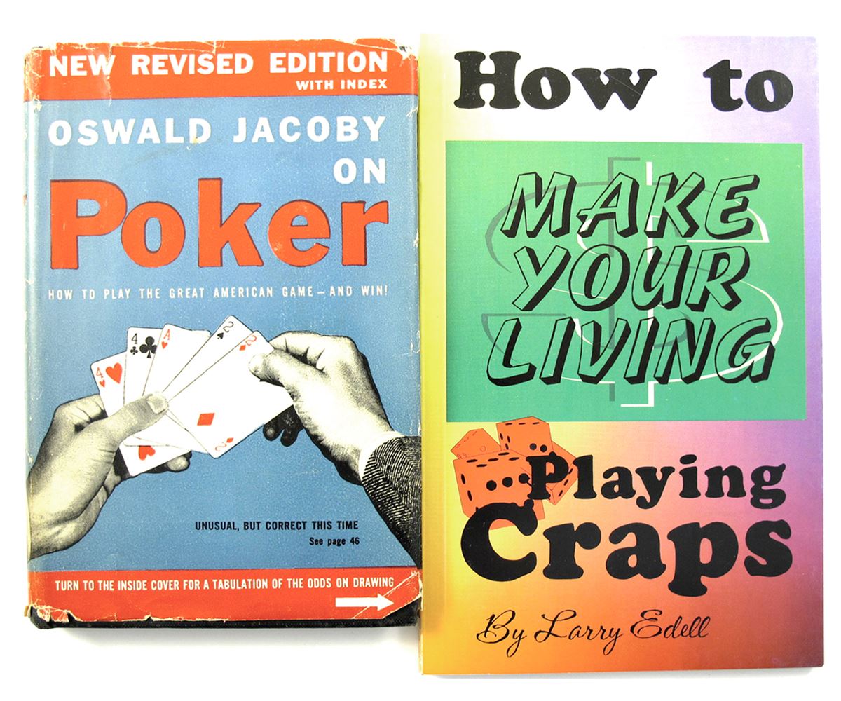 Lot of 2 includes: 1) Oswald Jacoby on Poker, How To Play the Great American Game--and Win!, by Oswald Jacoby, with foreword by Grantland Rice. Published by Doubleday & Co., New York in 1947, 175 pgs. With Index. Dustjacket shows wear, inside is intact. 2) How to Make Your Living Playing Craps, by Larry Edell. Published by Leaf Press in San Diego in 1999. Paperback, 120 pages, with charts and graphs. New condition.