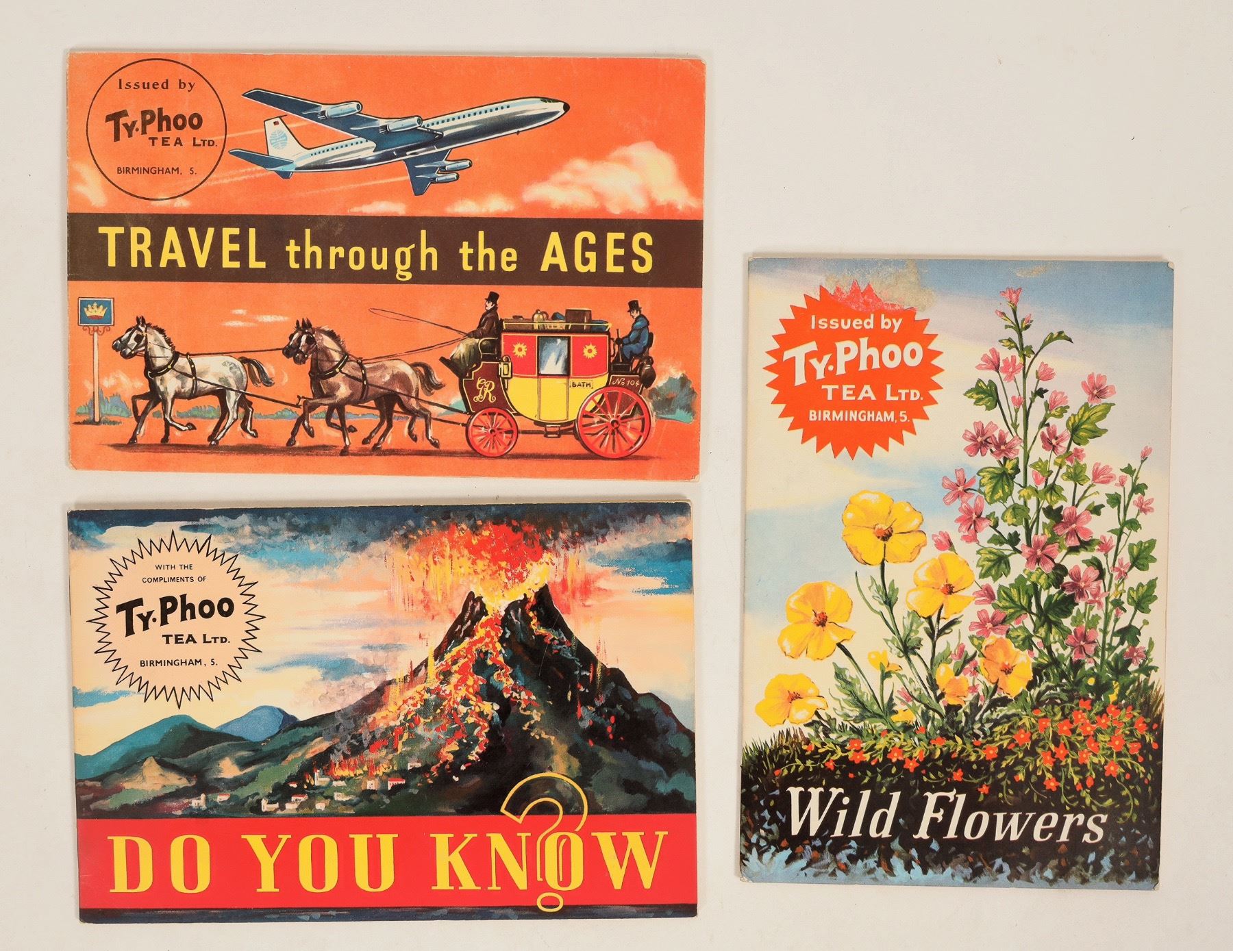 3 Ty-Phoo Cinderella booklets. Travel through the Ages, Do You Know?, Wild Flowers.[