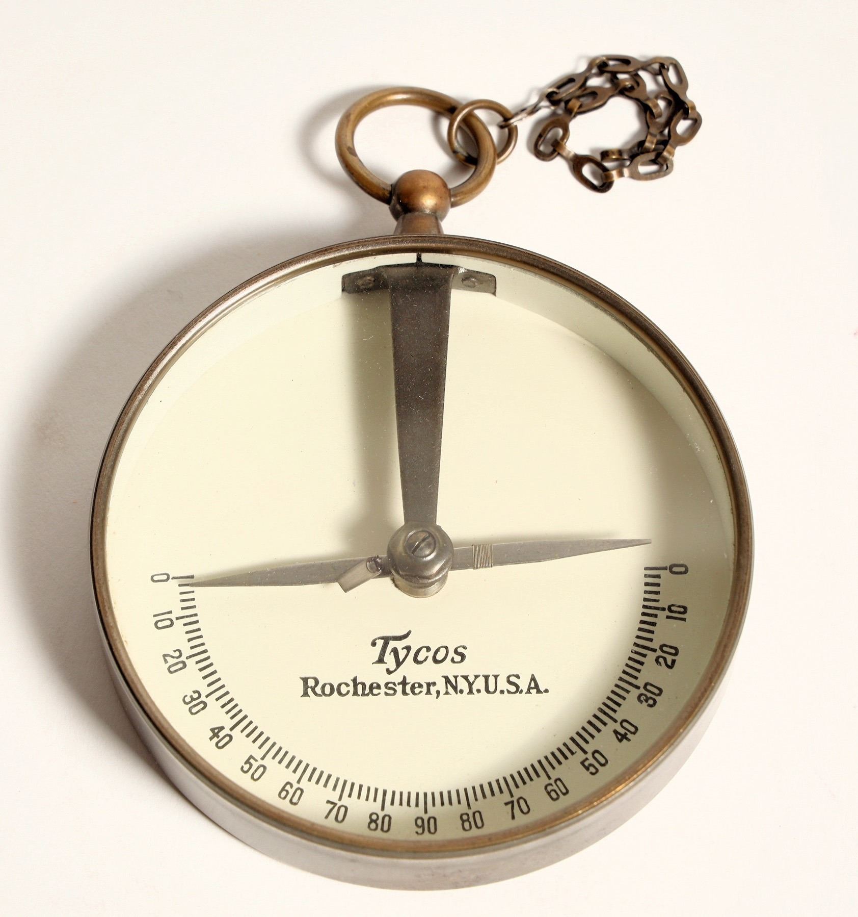 This miner's dip needle was made by Tycos of Rochester, New York. At 3.75 in. diameter with cover. Used to detect ore deposits under ground. In excellent condition. Please see photo for details.
