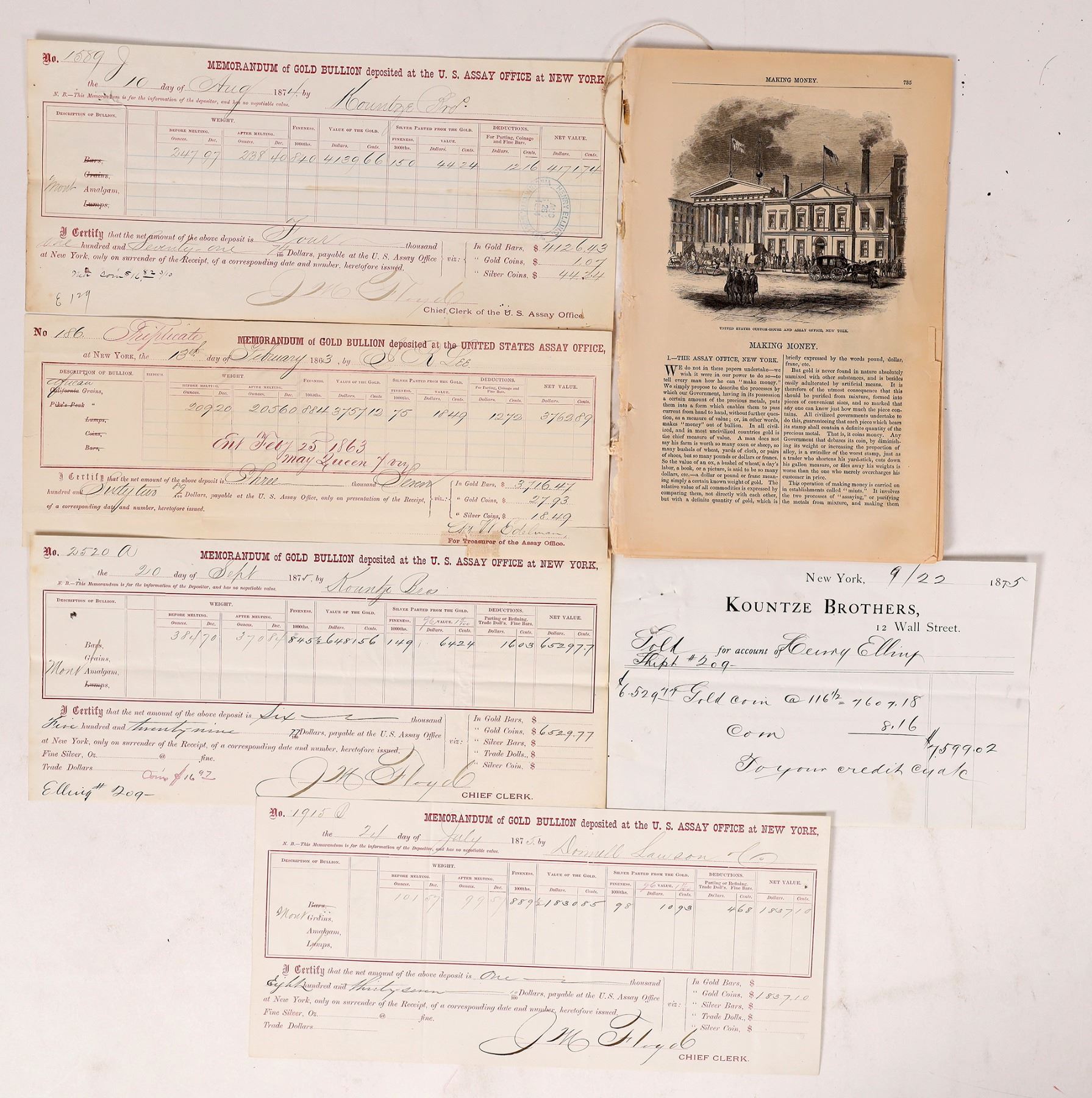 Unique collection of documents regarding b ullion deposits at the USAO New York. These documents in themselves are vey rare, and to have a collection of them is even rarer.