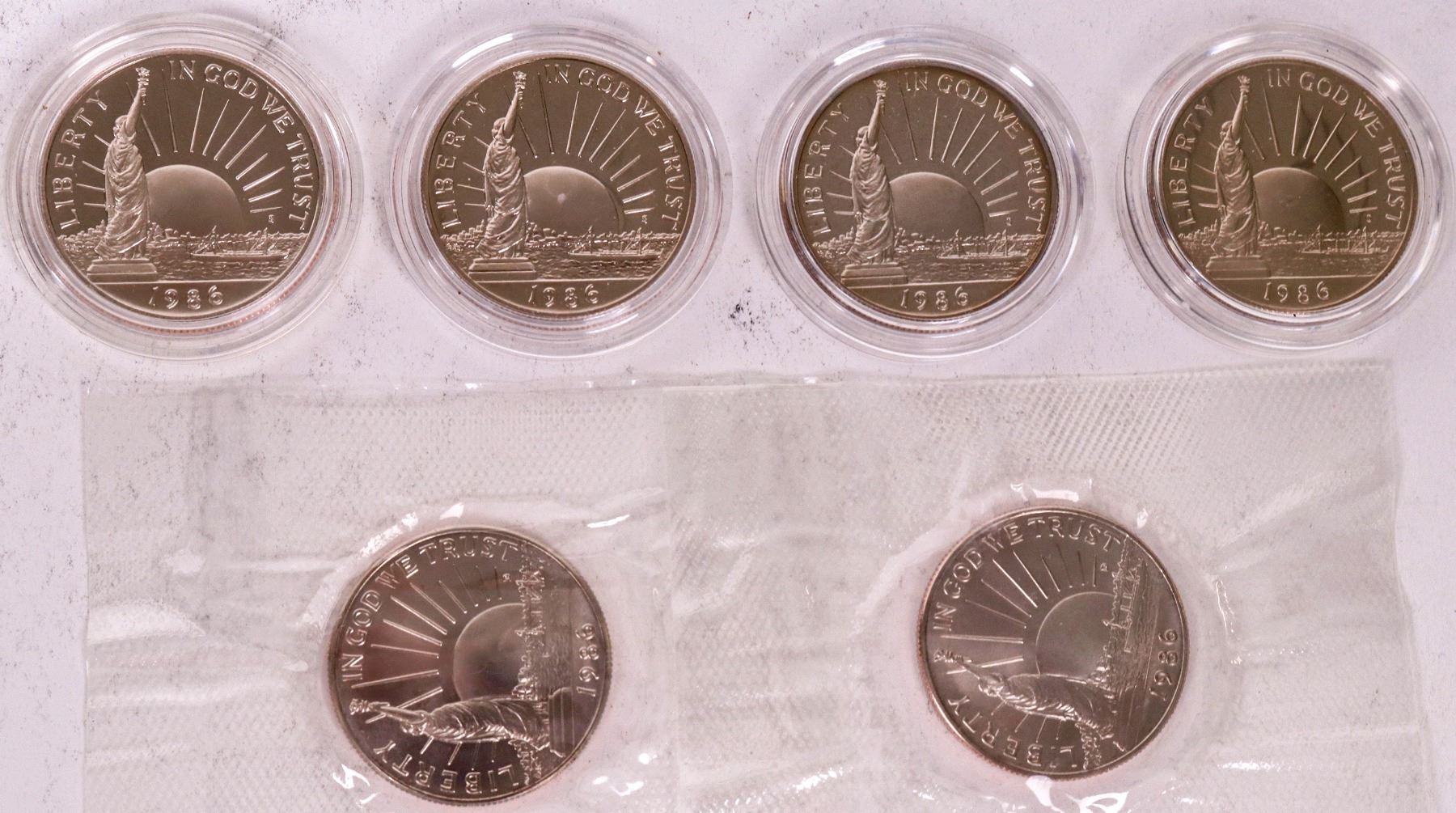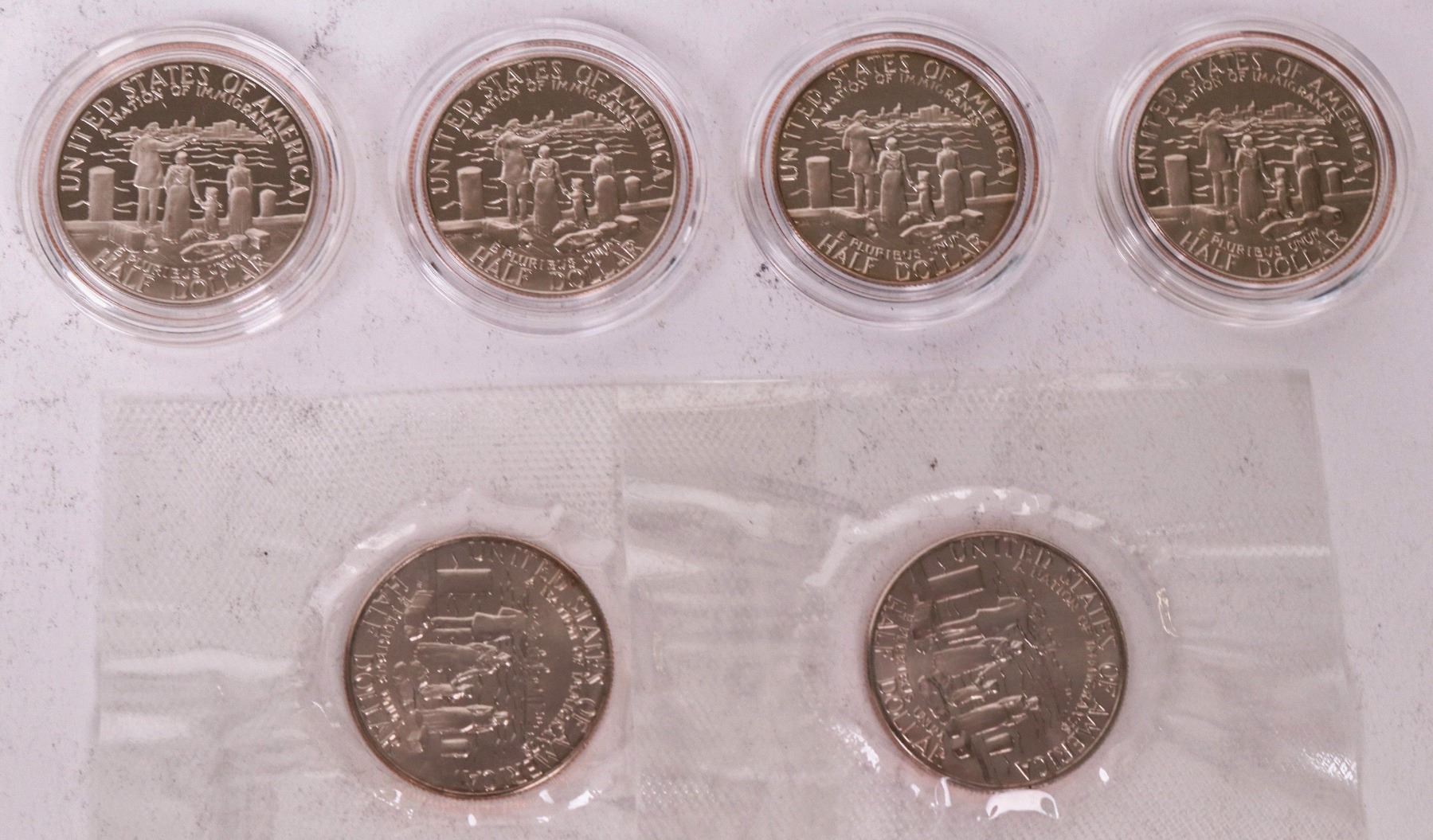 Six uncirculated Statue of Liberty/Ellis Island Commemorative half dollars in original U.S. Mint packaging with paper work signed by Donna Pope, director of the Mint.