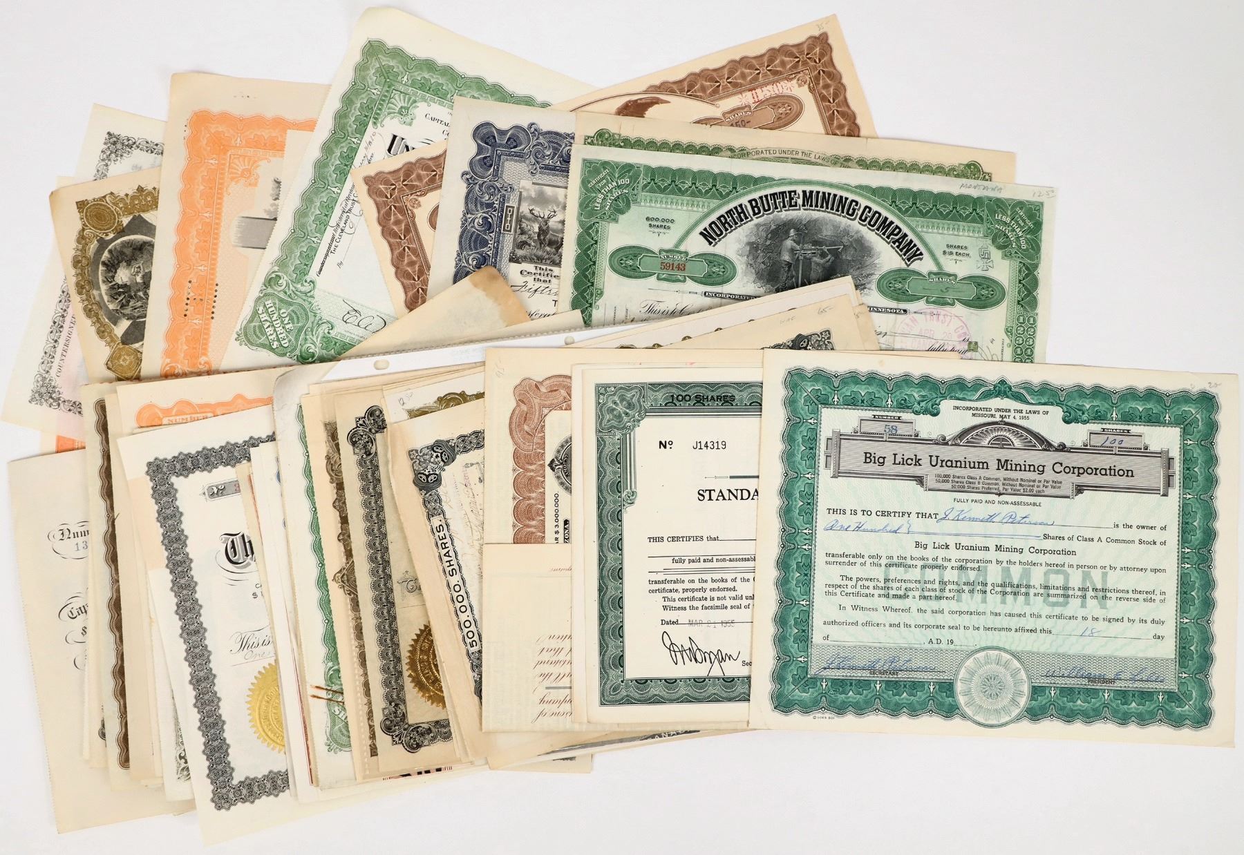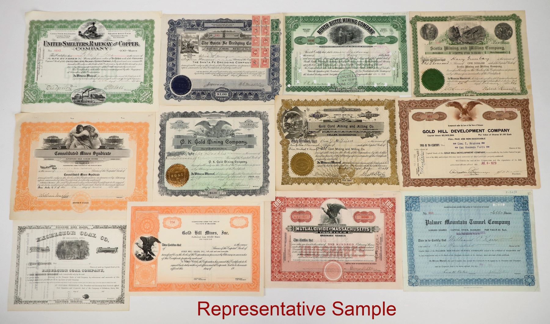 70 plus stock. U/U, I/C, I/U. Issued 1887-1961. The stocks span Nev, Calif, Utah, Colorado, Washington, Idaho Territory and several more states. See photos.