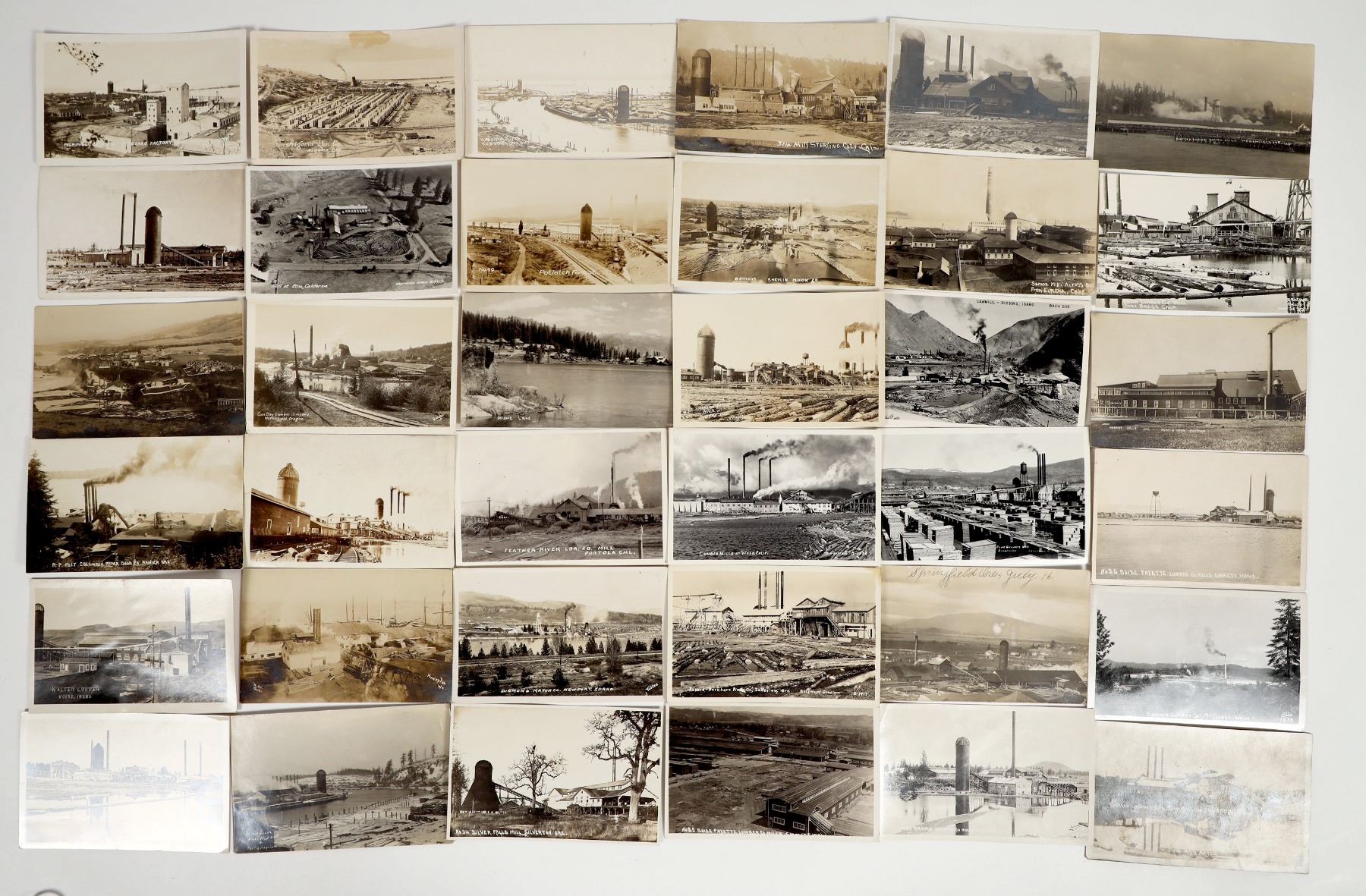 This is a lot of 36 postcards, ALL REAL PHOTOS. These postcards present lumbermills from different U.S states in the Pacific Northwest such as California and Oregon. They date from 1909 to 1954.