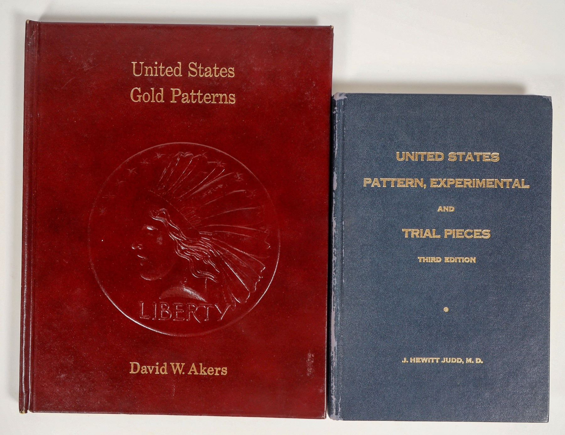 Lot of 2 Books: United States Pattern, Experimental and Trial Pieces, Third Edition, J. Hewitt Judd, M.D. (1977) ‚260 pp. Average condition. United States Gold Patterns, David W. Akers (1975) ‚115 pp. Average condition.