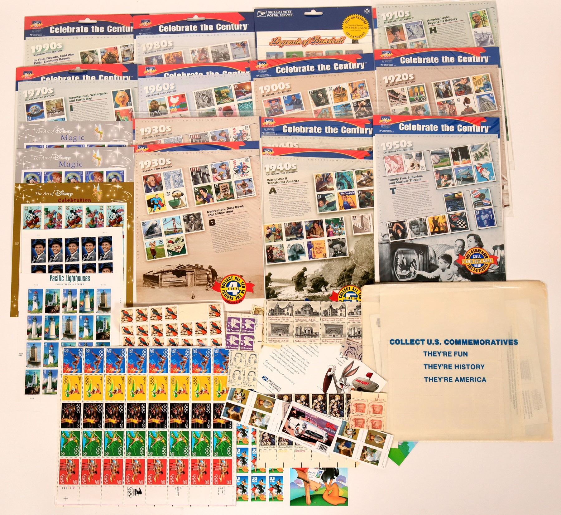 16 packets / face value of $100. 1.Celebrate the Century series 1900's to 1990's. 2. Legends of Baseball. 3. Pacific Lighthouses. 4. Large pack containing multi-serie including US Olympic 29c stamps 5. Pack containing Dinosaurs, Marilyn Monroe , Early football players, classic movie monsters and more. Something for everyone.