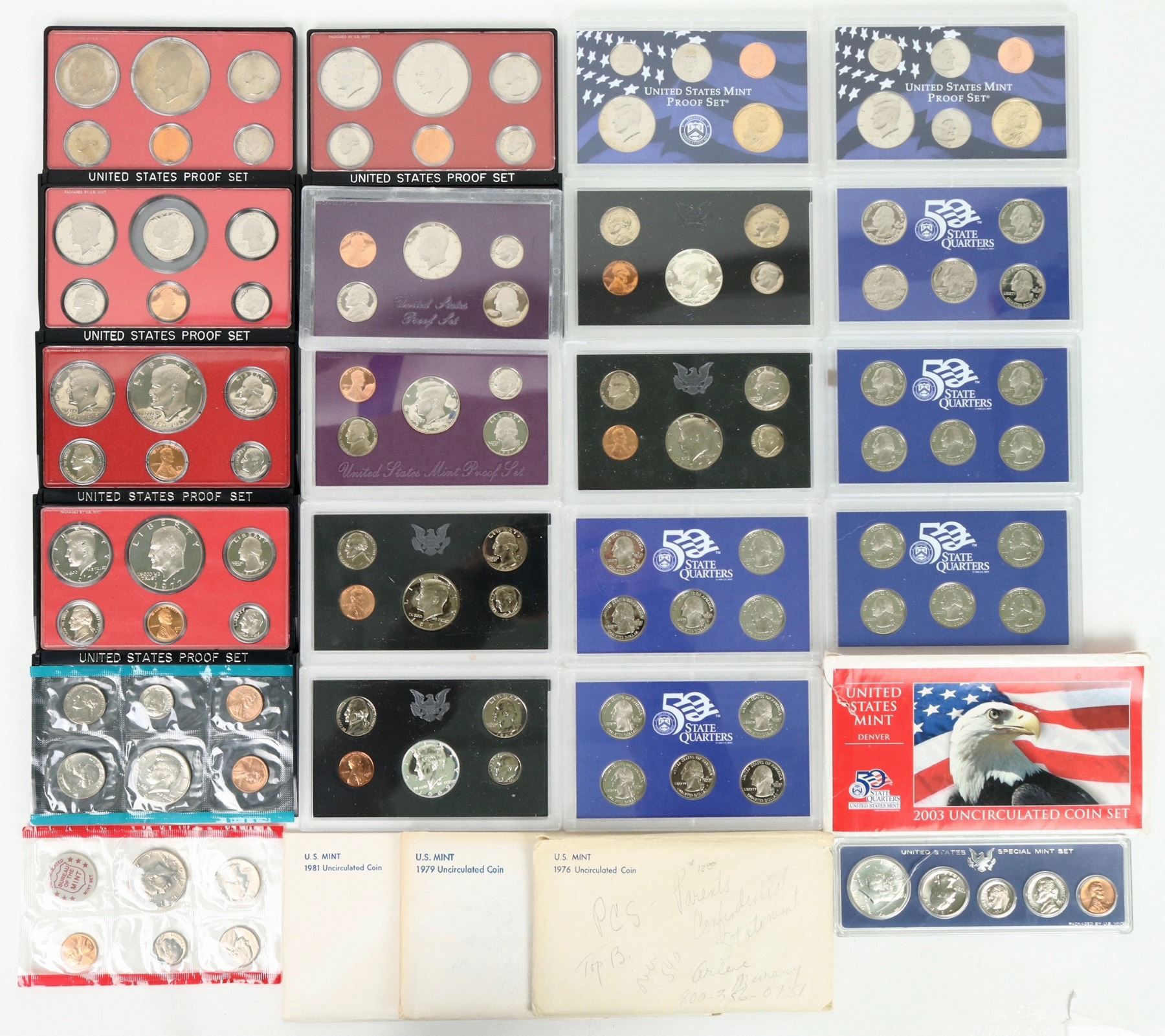U. S. proof and mint sets. Proof sets: 1966, 1968, 1971, 1972, 1974, 1975, 1976, 1977, 1979, 1987, 1991, 2005, 2006. Mint sets: 1971, 1976, 1979, 1981, 2003, 2005, 2006, 2007.