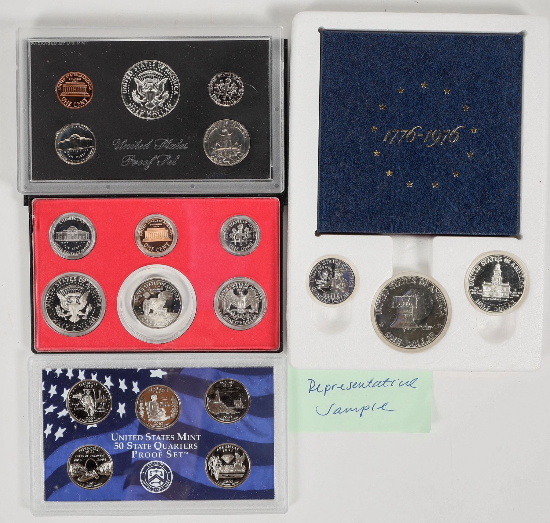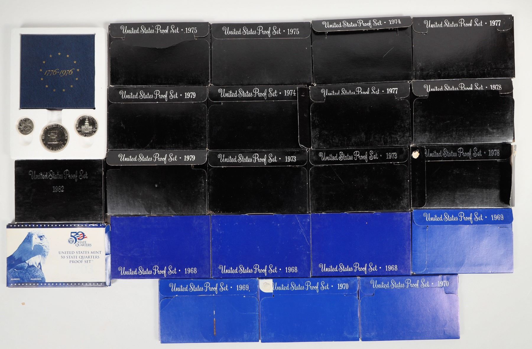 U.S. Proof Sets: 1968 (3); 1969 (2); 1970 (2); 1973 (2); 1974(2); 1975 (2); 1976 (3 coin Bicentennial); 1977(2); 1978 (2); 1979 (2); 1982; 2003 state quarters.
