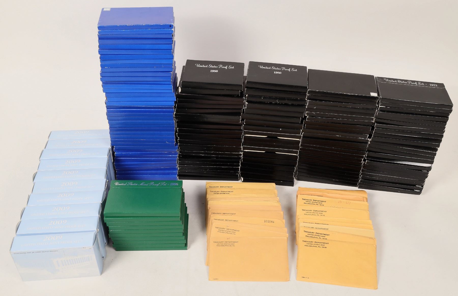 Bankers box of 180 U. S. proof sets, ten of each year: 1962, 1963, 1964, 1969, 1970, 1971, 1972, 1973, 1974, 1975, 1976, 1977, 1978, 1979, 1980, 1981, 1996, 2009.